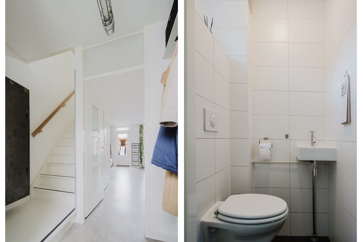 De woningentree biedt toegang tot de hal welke toegang geeft tot de meterkast (2021), het toilet en de ruime woonkamer.