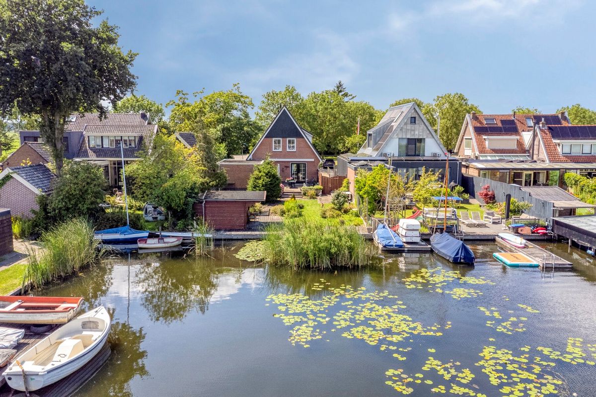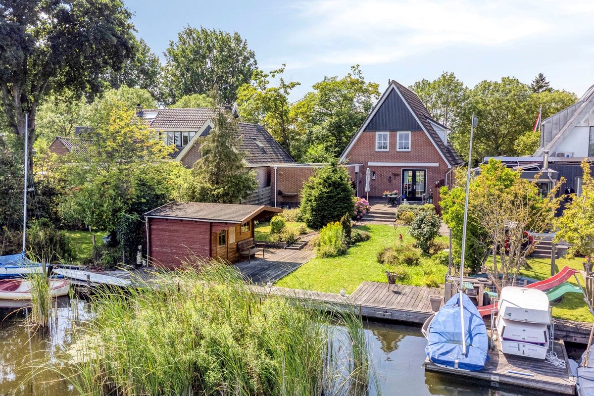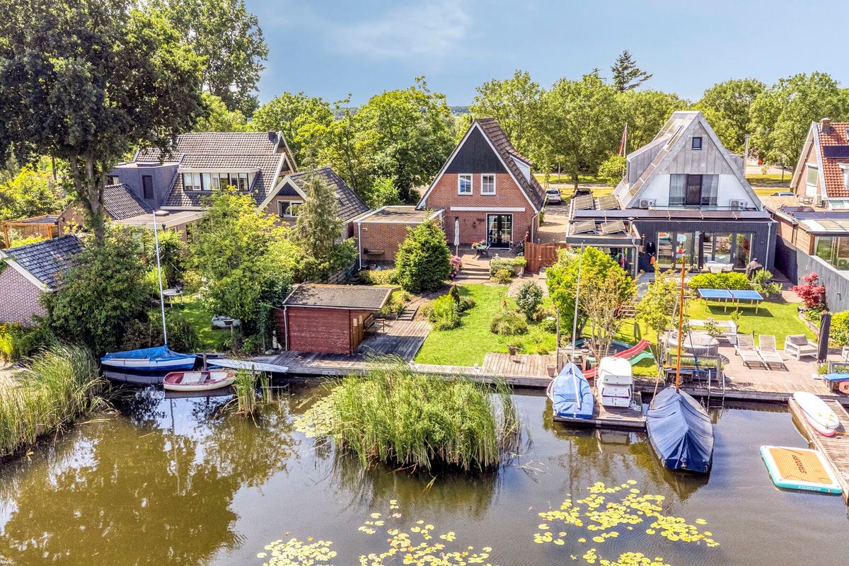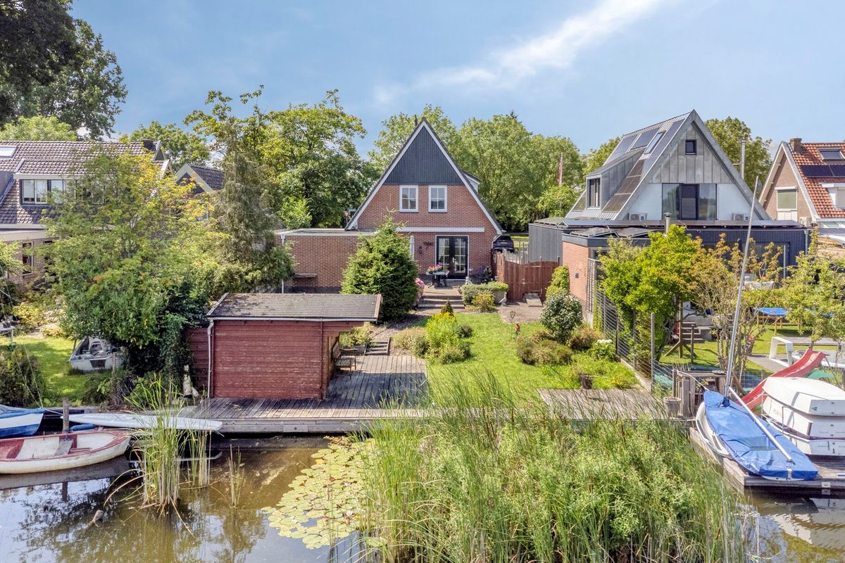 De achtertuin – met volledige zonligging – grenst direct aan het water, waardoor je kunt genieten van de mogelijkheid om je eigen sloep, kano of SUP-board aan te leggen. Of je nu houdt van varen, vissen of gewoon ontspannen aan de waterkant: deze tuin biedt het allemaal.