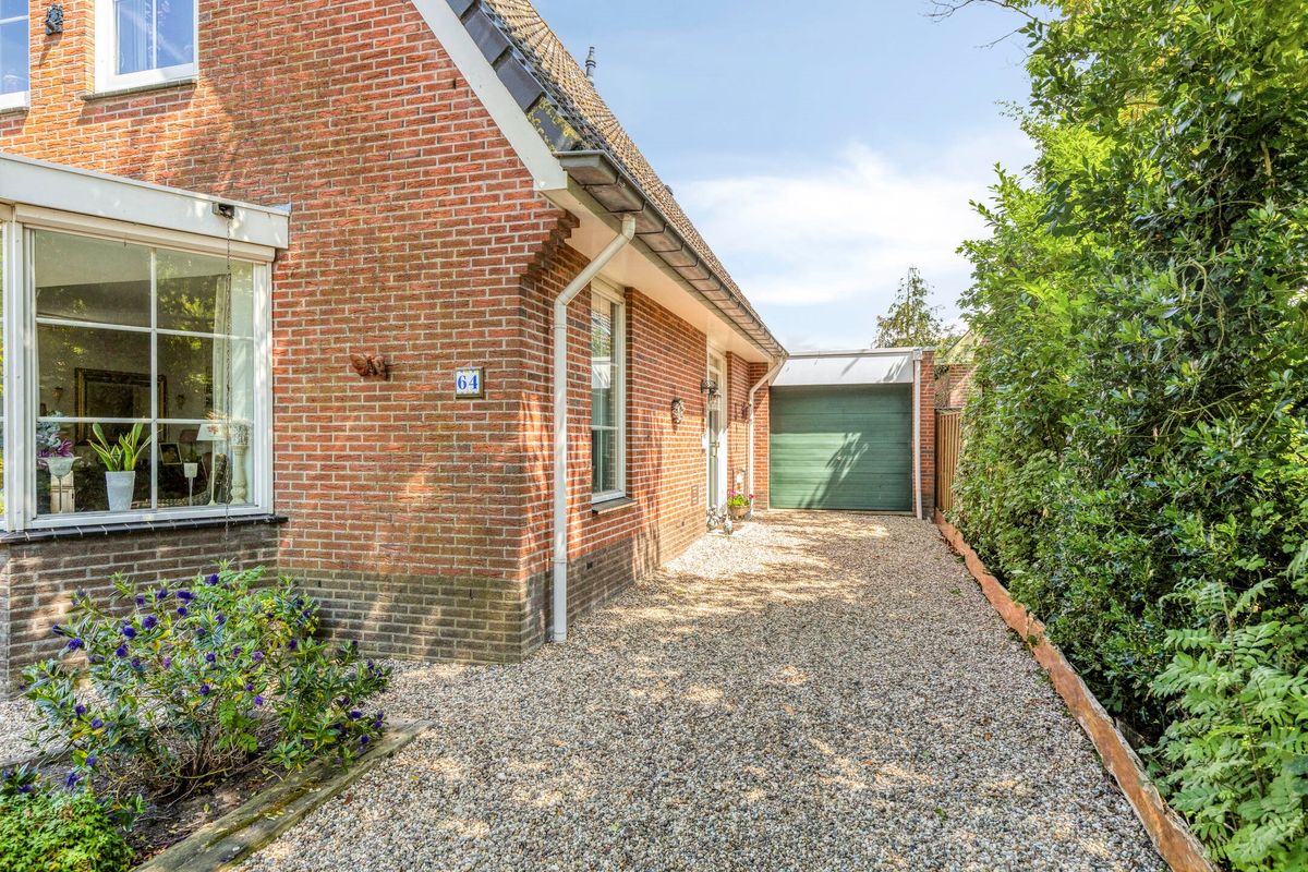De voortuin en oprit bieden parkeergelegenheid op eigen terrein, met ruimte voor meerdere auto’s.
