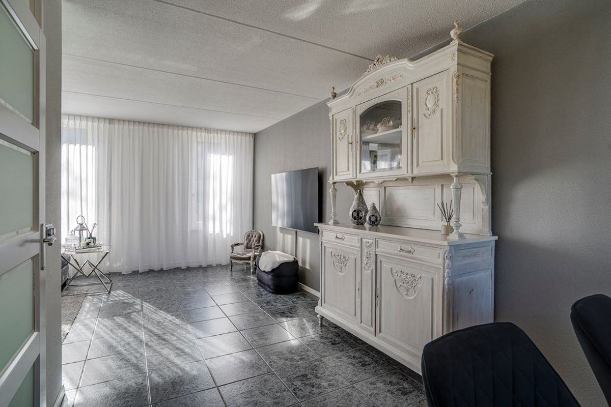 De woonkamer is uitgevoerd in een praktische L-vorm en staat in verbinding met de halfopen keuken.