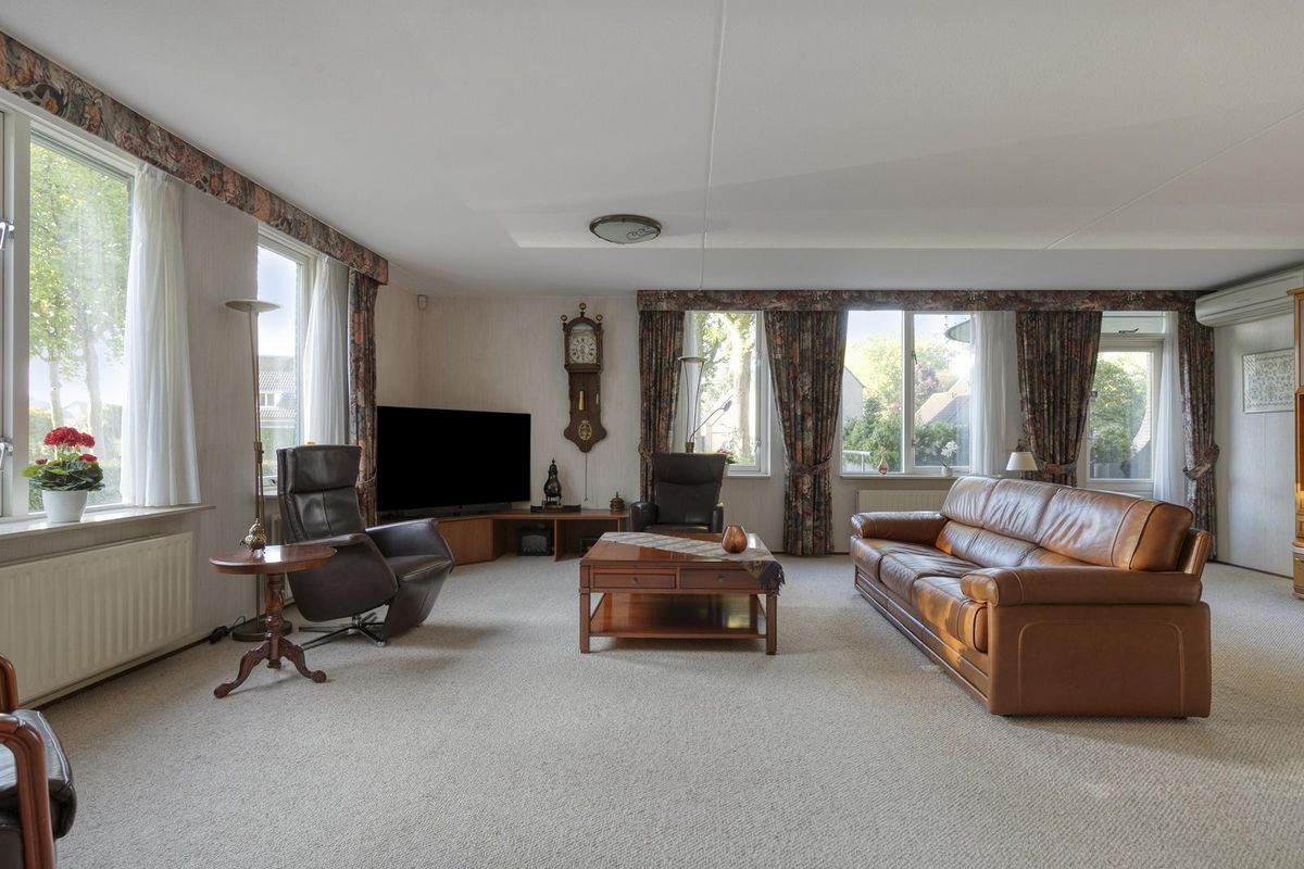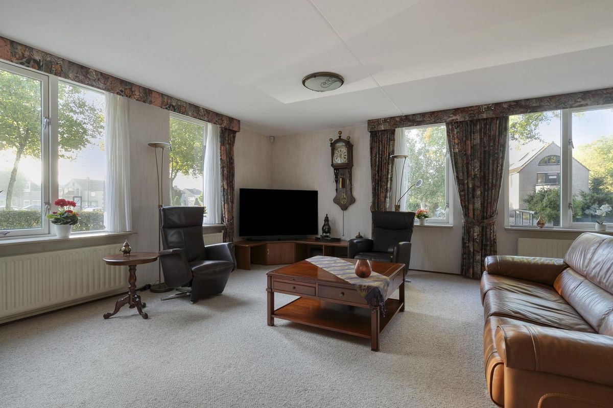 * de ramen in de woonkamer zijn aan de buitenkant voorzien van elektrische zonneschermen.