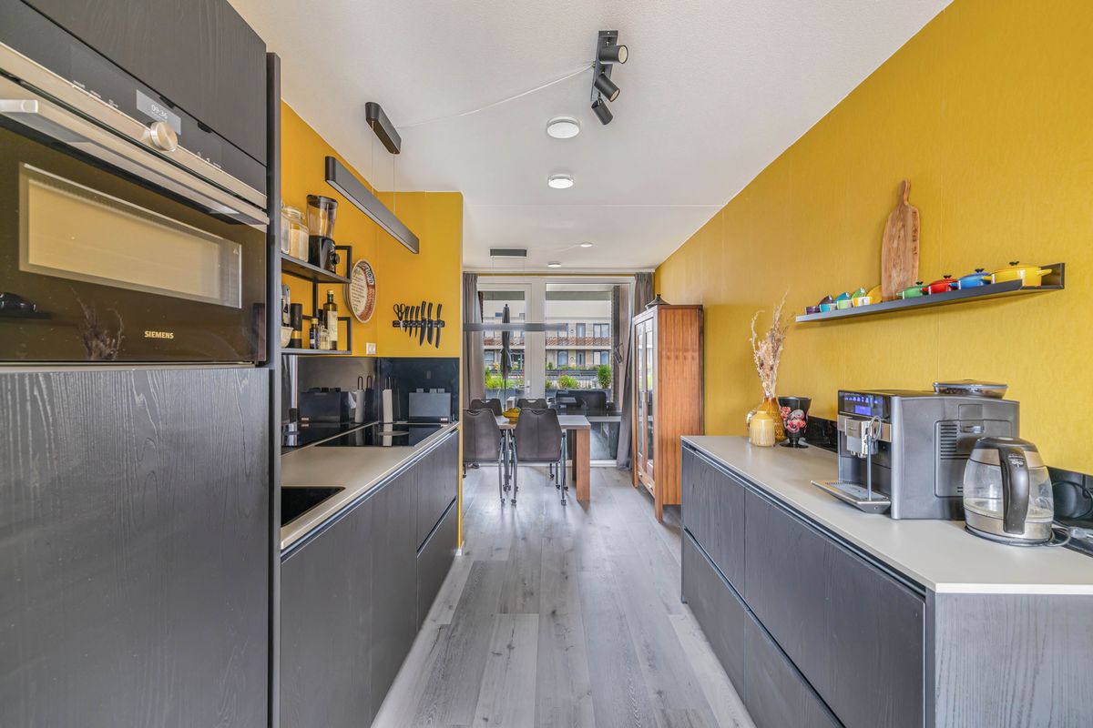 • Moderne keuken in dubbele lijnopstelling met inbouwapparatuur (vaatwasser, inductiekookplaat met geïntegreerde afzuiging, koelkast, en combimagnetron)