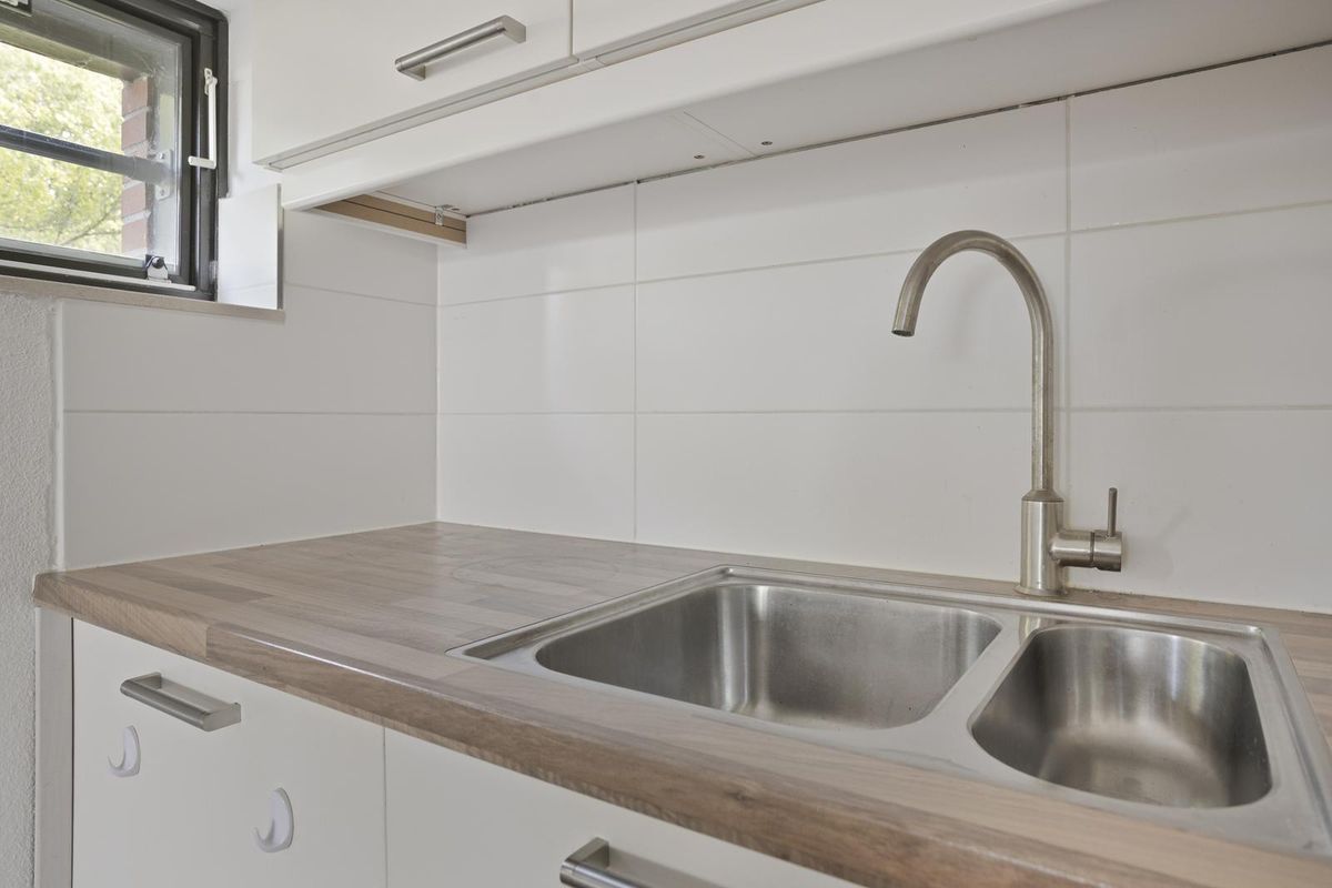 Bij binnenkomst via de hal/entree, met toegang tot de kruipruimte, een verhoogd betegeld toilet en een meterkast met zes groepen en aardlekschakelaar, betreedt u de lichte en royale woonkamer. Dankzij de grote raampartijen aan de achterzijde geniet u hier van een prachtig uitzicht over het recreatiegebied, wat de ruimte een open en luchtig karakter geeft. De woonkamer is voorzien van een in hoek opgestelde open keuken met diverse inbouwapparatuur, waaronder een 4-pits gaskookplaat, afzuigkap, oven, koelkast en vaatwasser. De gehele ruimte is netjes afgewerkt met een laminaatvloer.