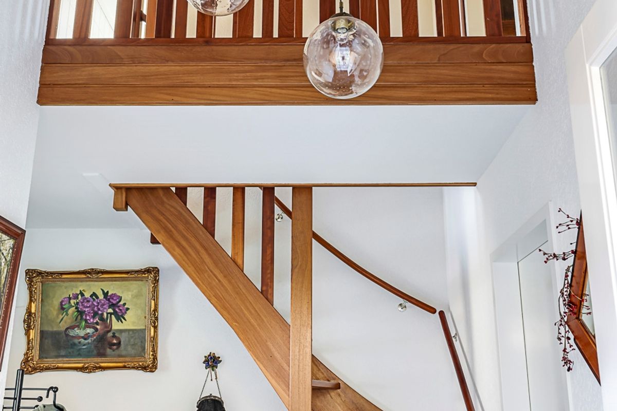 Boven kom je op een speelse vide die aansluit op de overloop. Vanaf hier heb je toegang tot drie slaapkamers en de tweede badkamer. Alles is netjes onderhouden, al kan een nieuwe eigenaar er natuurlijk voor kiezen om het geheel gemakkelijk een modernere uitstraling te geven. De master bedroom is bijzonder groot en biedt aanvullende mogelijkheden voor een werkplek, hobbyruimte of een ruim bemeten inloopkast. De andere twee slaapkamers zijn eveneens van prettig formaat. Vanuit één van deze kamers bereik je met een vlizotrap de zolder. De tweede badkamer van de woning is licht en neutraal, met een douche, wastafel en toilet.