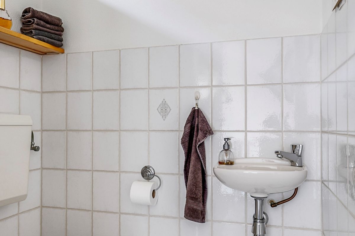Upstairs, a playful mezzanine opens onto the landing. From here you have access to three bedrooms and the second bathroom. Everything is well maintained, though a new owner could of course easily update the style if desired. The master bedroom is particularly large and offers additional possibilities for a workspace, hobby area or a generously sized walk-in wardrobe. The other two bedrooms are also of a good size. From one of these rooms you can reach the loft via a loft ladder. The property’s second bathroom is light and neutral, with a shower, washbasin and WC.