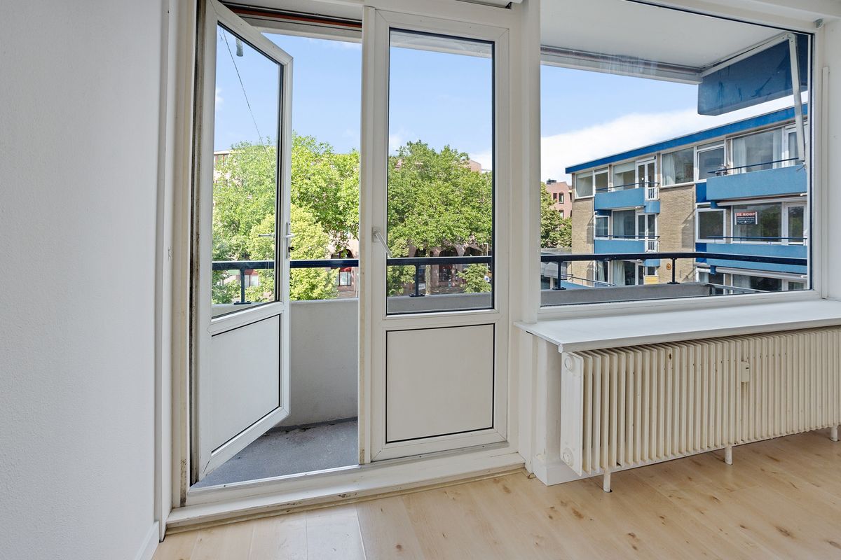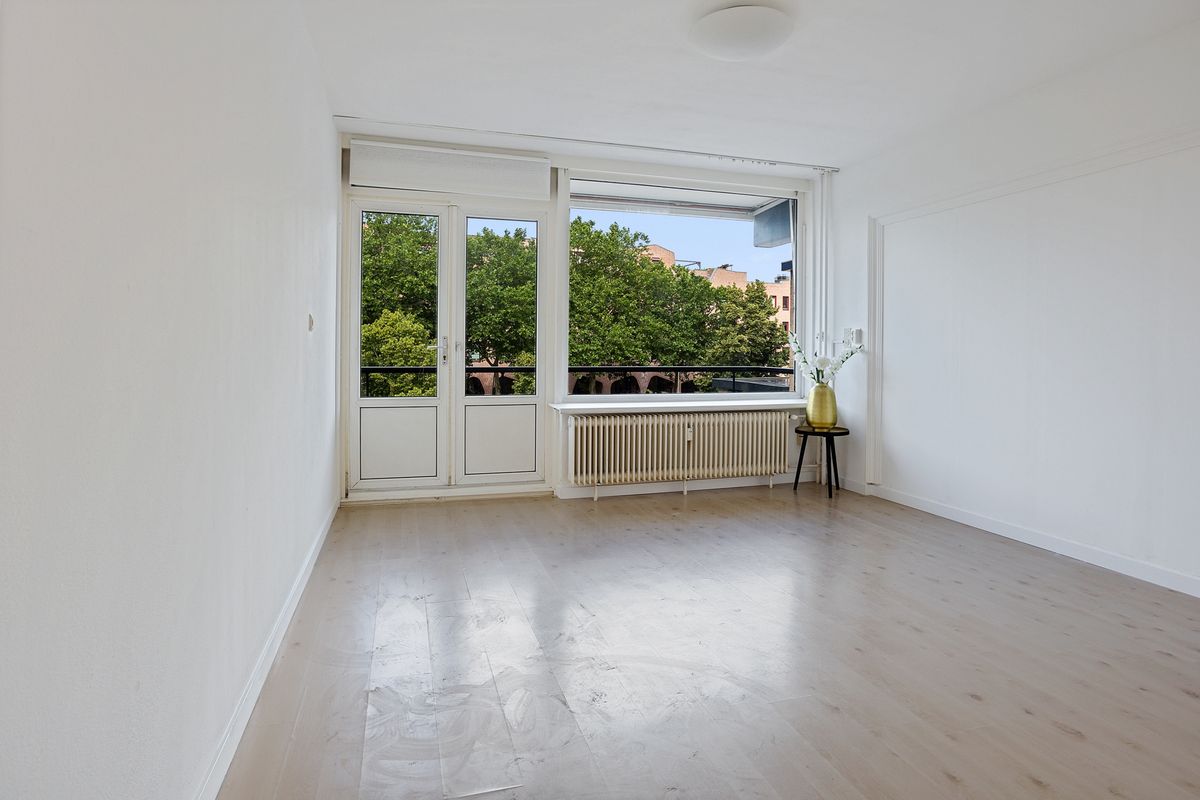 De woonkamer aan de achterzijde van de woning is royaal en licht en biedt toegang tot het heerlijke balkon op het zuidwesten.