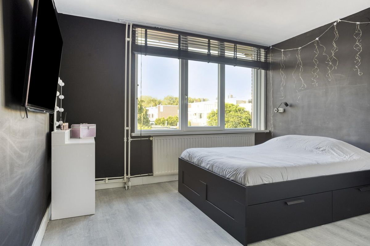 De slaapkamer aan de voorzijde van 4,5 m² is ideaal als babykamer, werkkamer of inloopkast en beschikt bovendien over een vaste kast. De tweede slaapkamer aan de voorzijde is 11 m² groot en heeft twee vaste kasten, waarvan één de voormalige badkamer is. Hier past met gemak een tweepersoonsbed en is er nog voldoende ruimte voor extra kasten. De slaapkamer aan de achterzijde is 11,9 m² groot, heeft een strak plafond en nette wanden, en biedt plek voor een tweepersoonsbed, bureau en kledingkast.