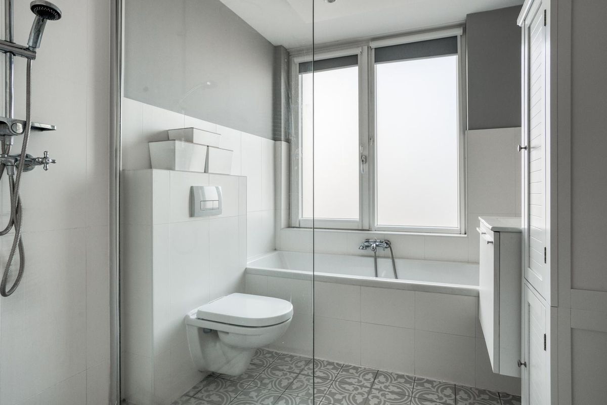 Op de eerste verdieping geeft de overloop toegang tot drie slaapkamers, de badkamer en twee praktische kasten, waarvan één is ingericht als wasruimte met plek voor de wasmachine en droger. De badkamer van 5,4 m² is modern en luxe uitgevoerd. Je kunt hier heerlijk ontspannen in het ligbad of kiezen voor de inloopdouche met regendouche en handdouche. Verder zijn er een badkamermeubel met spiegel, een designradiator en een zwevend toilet aanwezig.