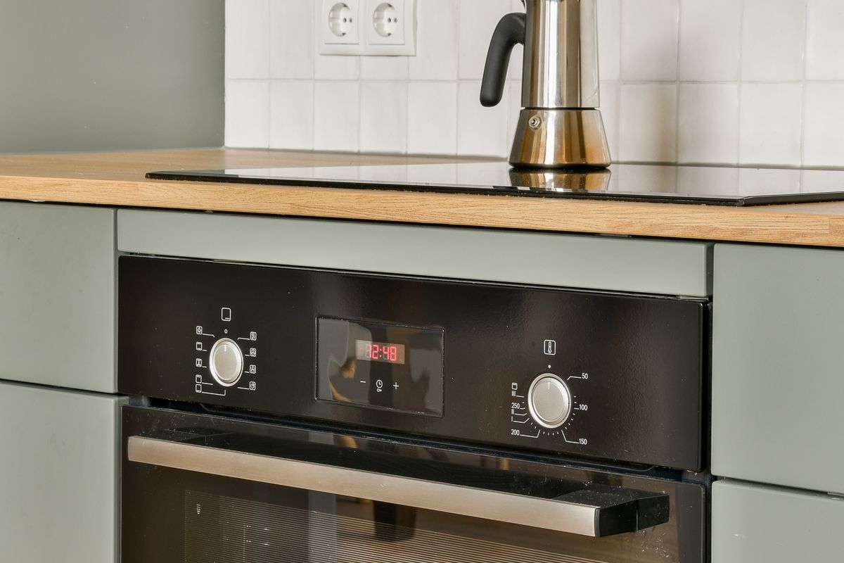 De nieuwe keuken in L-opstelling is modern vormgegeven en uitgerust met hoogwaardige inbouwapparatuur, waaronder een inductiekookplaat, afzuigkap, oven, koel-/vriescombinatie, en vaatwasser. Hier bevindt zich tevens de combiketel (Remeha, 2024) en een deur naar het balkon.