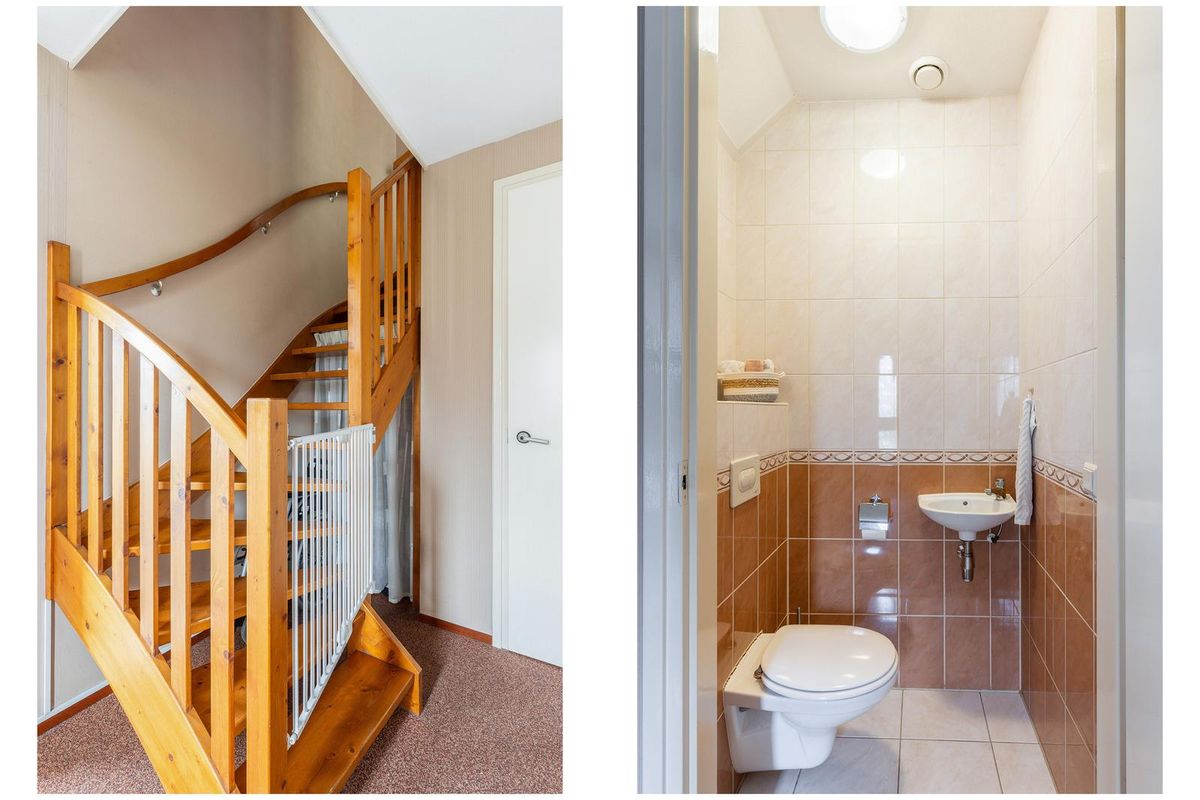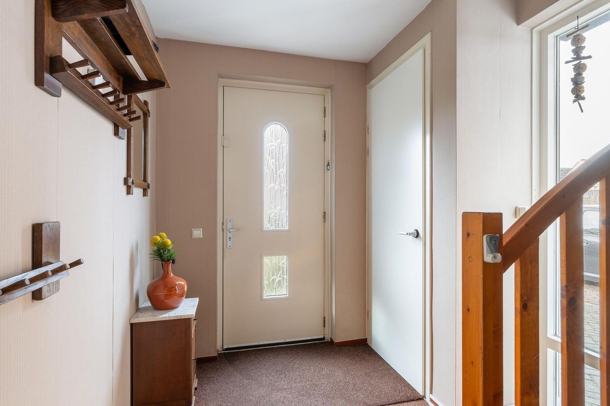 Hal/entree met de meterkast (10 groepen, 2 aardlekschakelaars, glasvezelaansluiting en waterontharder [ter overname]), geheel betegeld hangtoilet met fontein, trapopgang en toegang tot de woonkamer. De begane grondvloer is tot en met de bijkeuken uitgerust met vloerverwarming.