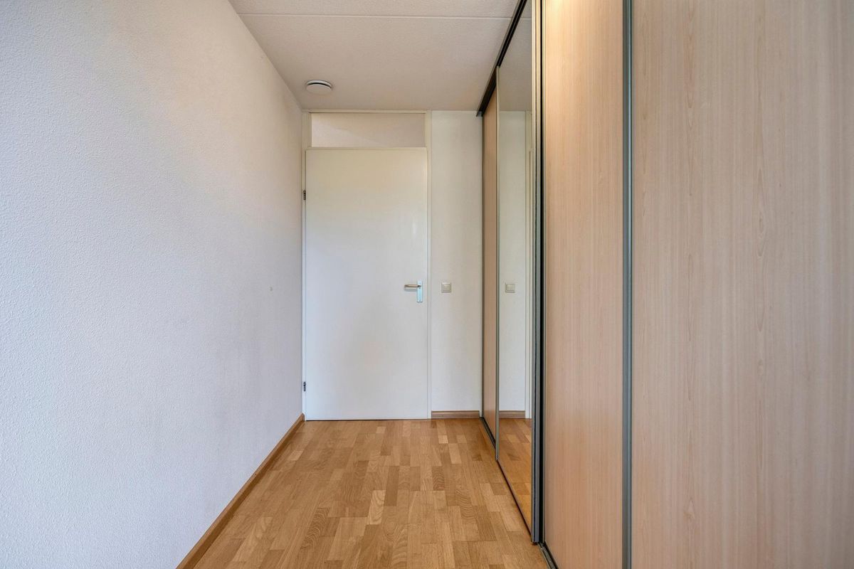 De hal leidt naar een privé inpandige galerij met projecttapijt. Hier treft u de voordeur en de meterkast met glasvezelaansluiting.