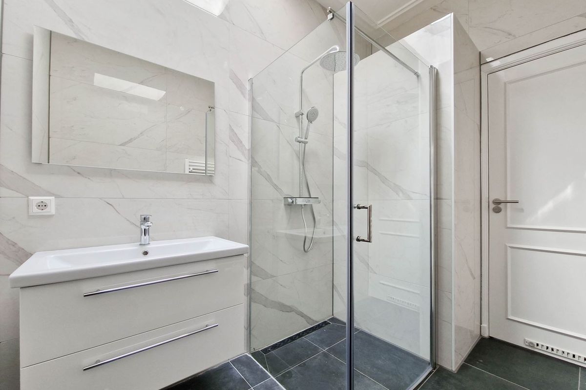 - Badkamer: Nette badkamer met wastafelmeubel, douche, designradiator