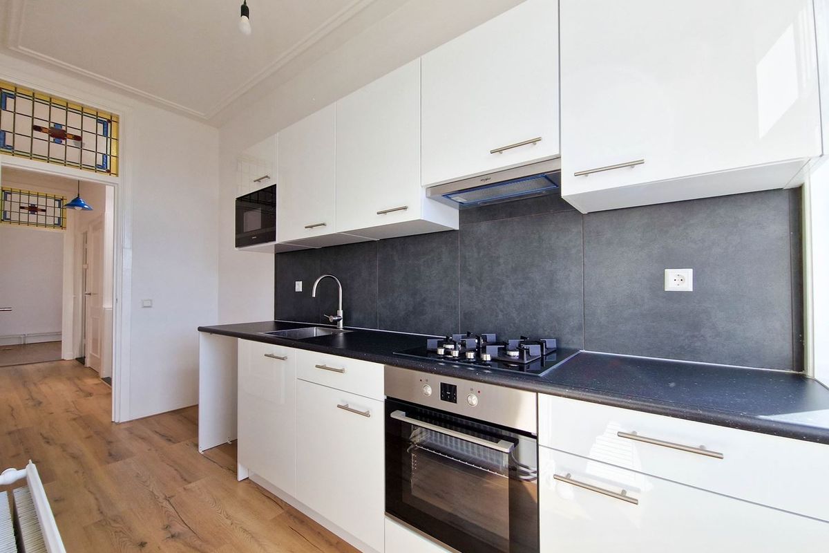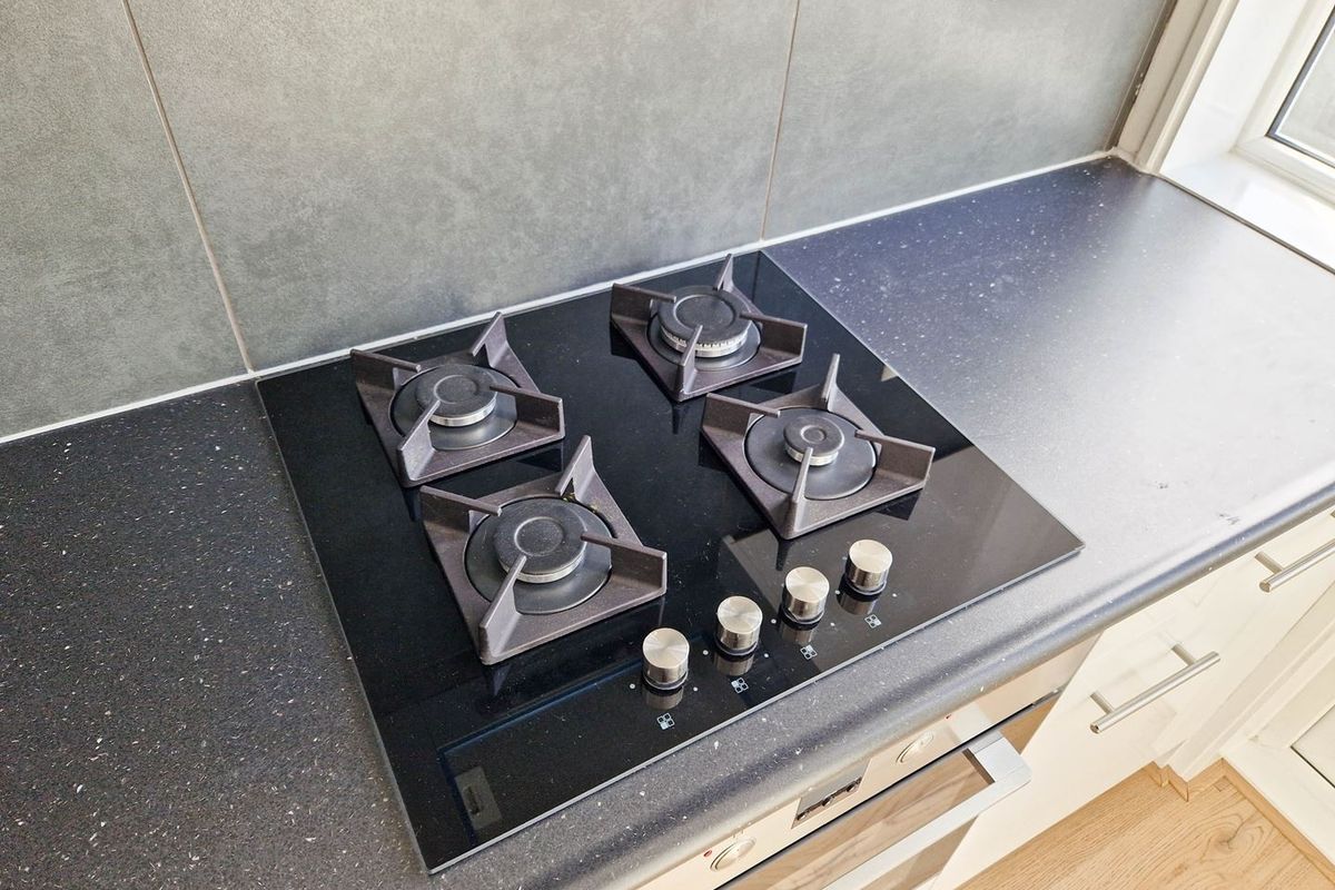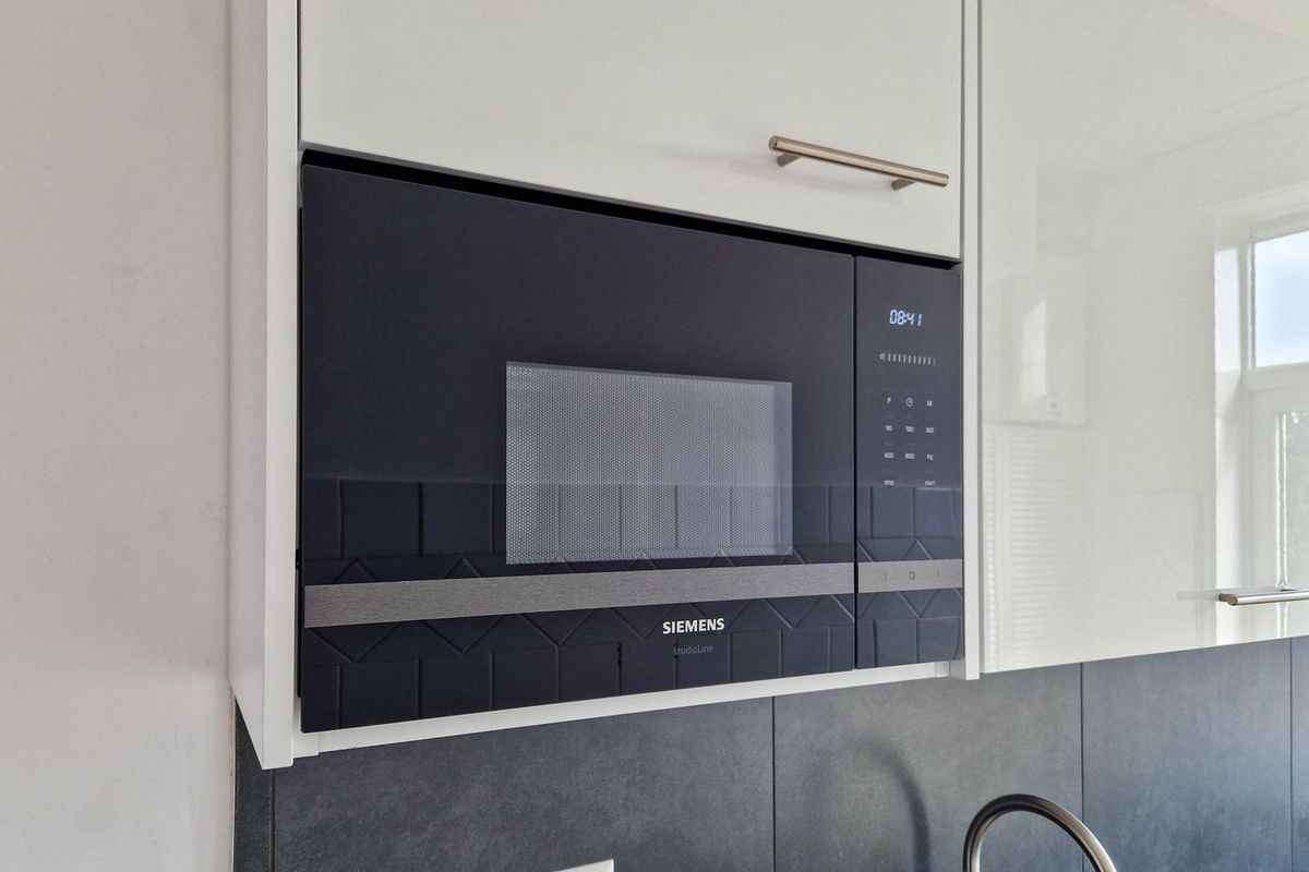 Moderne keuken voorzien van inbouwapparatuur gesitueerd aan de achterzijde tevens met toegang tot het balkon.Opstelplaats CR Remeha combi ketel bouwjaar 2025.