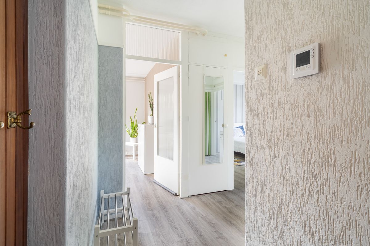 Upon entering the apartment, you arrive in a spacious hallway with multiple built-in closets, perfect for storing coats, shoes, and other belongings. From the hallway, you have access to all rooms in the apartment.