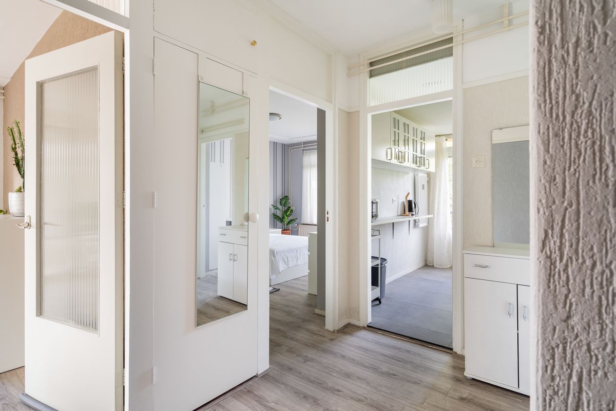 Bij binnenkomst in de woning kom je in een ruime hal met meerdere vaste kasten, ideaal voor het opbergen van jassen, schoenen en overige spullen. Vanuit de hal heb je toegang tot alle vertrekken in de woning.