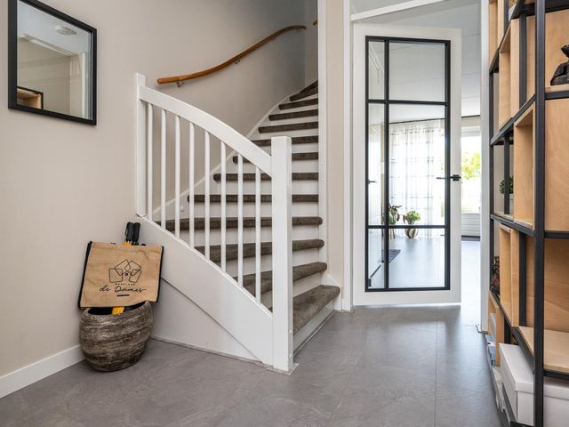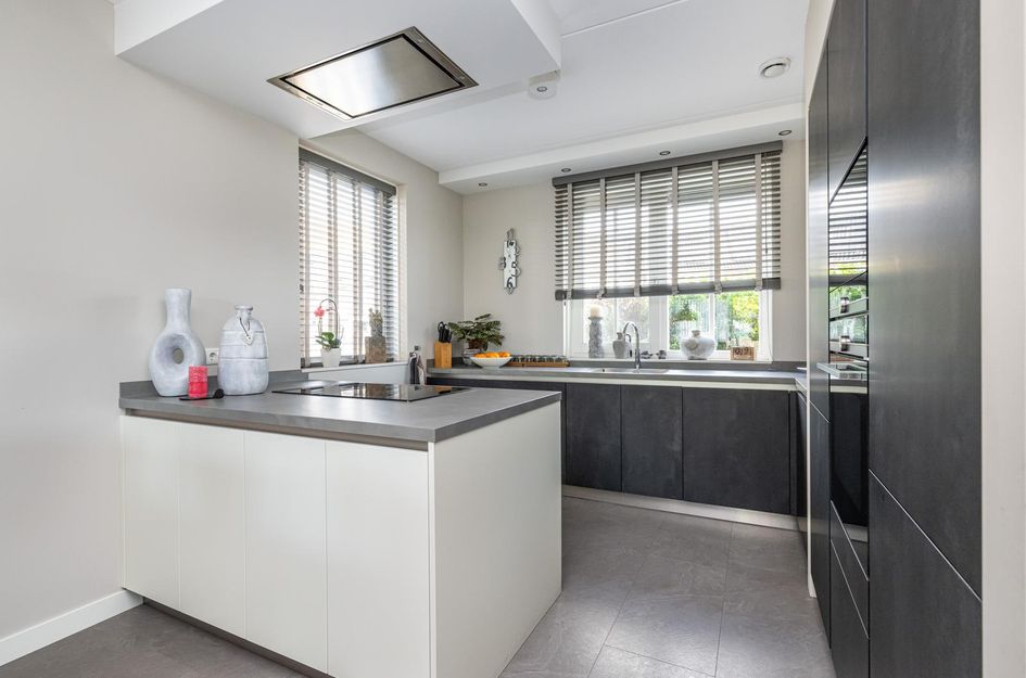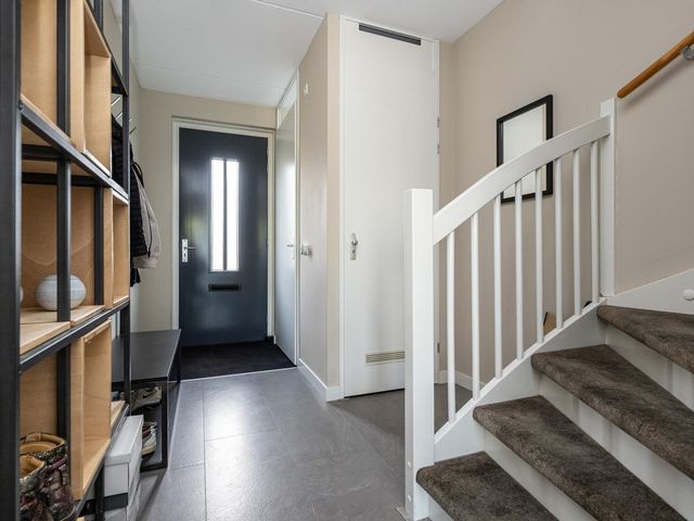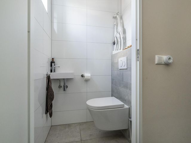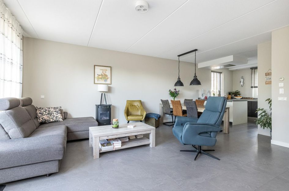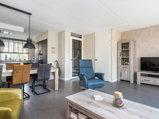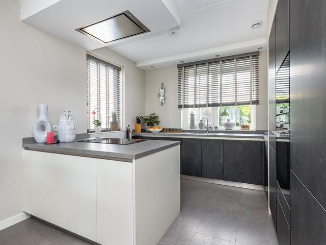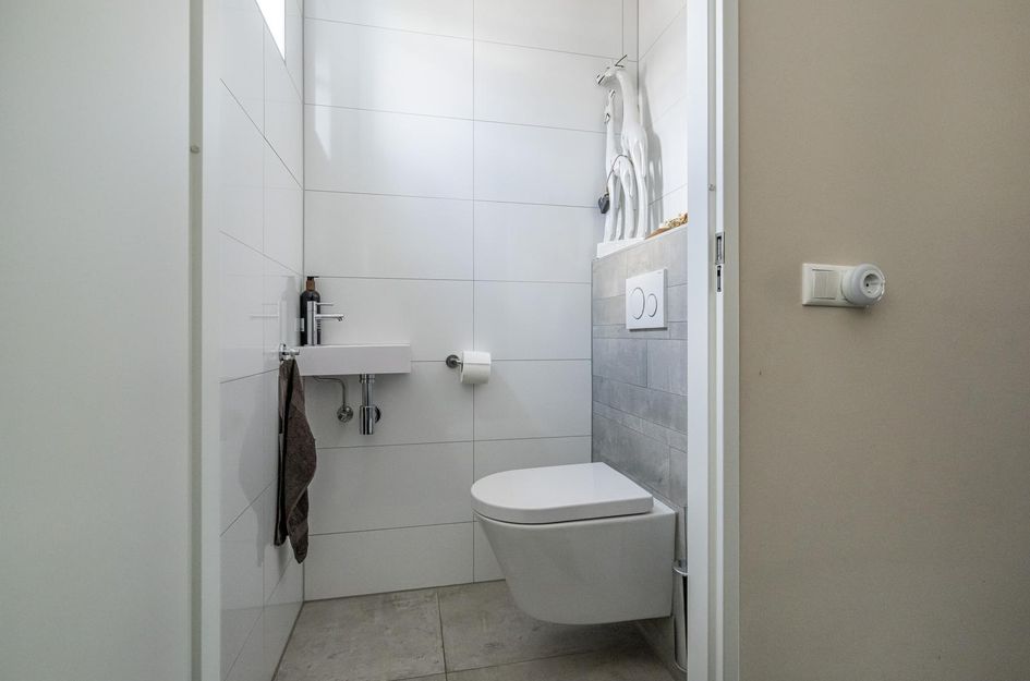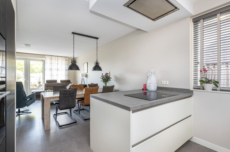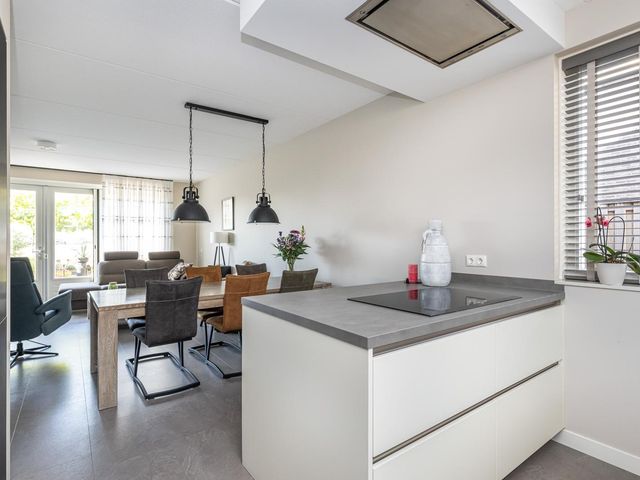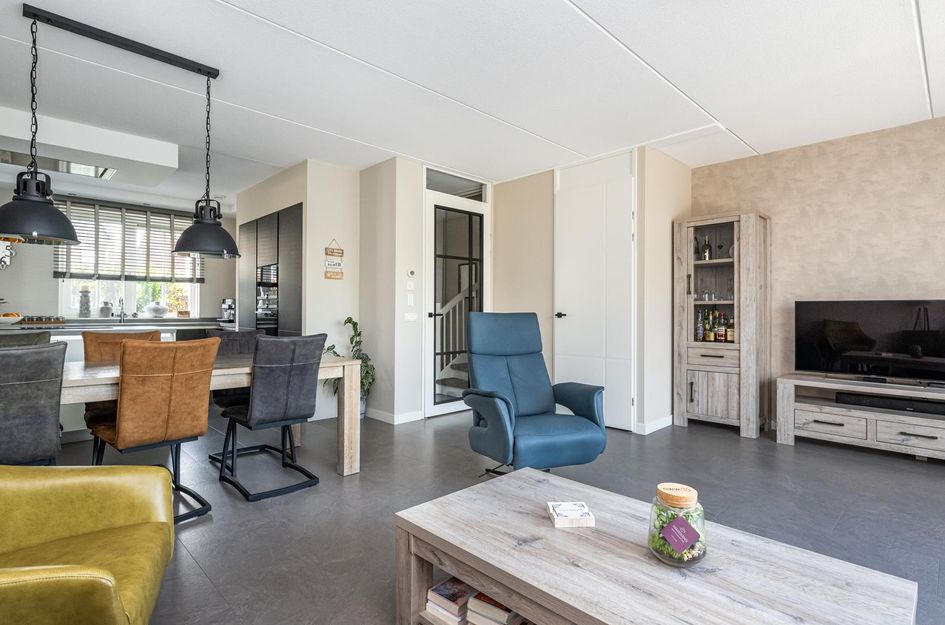 Bij binnenkomst stap je in de ruime hal met toilet en meterkast. Vanuit daar loop je de lichte woonkamer in, met grote ramen en openslaande deuren naar de achtertuin. De moderne keuken is van alle gemakken voorzien en nodigt uit tot gezellig koken en tafelen.
