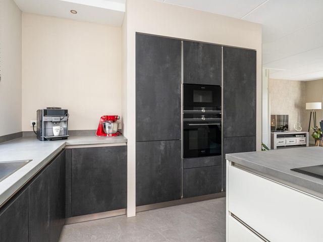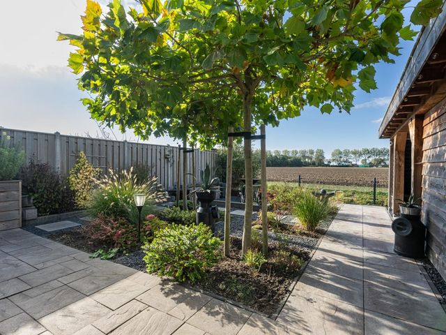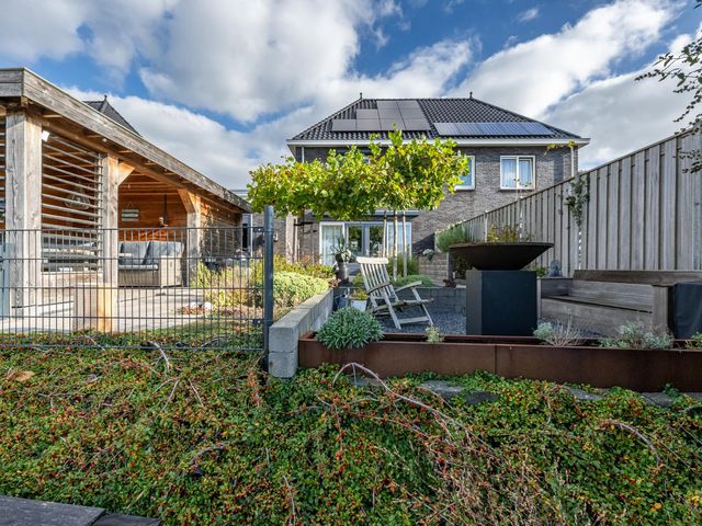 De tuin ligt op het zuidwesten – ideaal voor zonaanbidders én levensgenieters. Dankzij de overkapping creëer je een fijne buitenplek waar je het hele jaar door kunt genieten. Of het nu gaat om een barbecue, een borrel in de avondzon of gewoon ontspannen na een lange dag: hier voelt elke dag een beetje als vakantie.