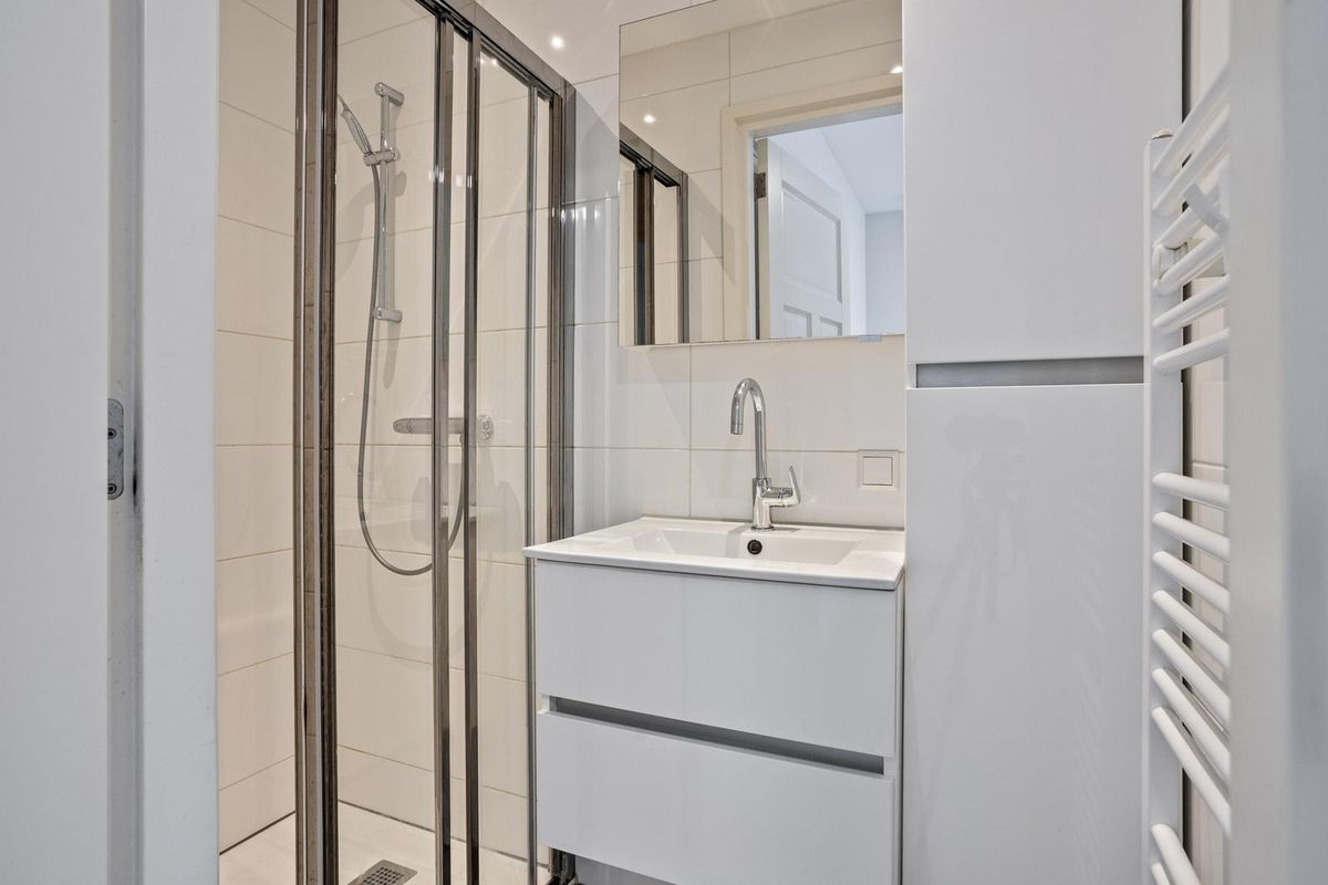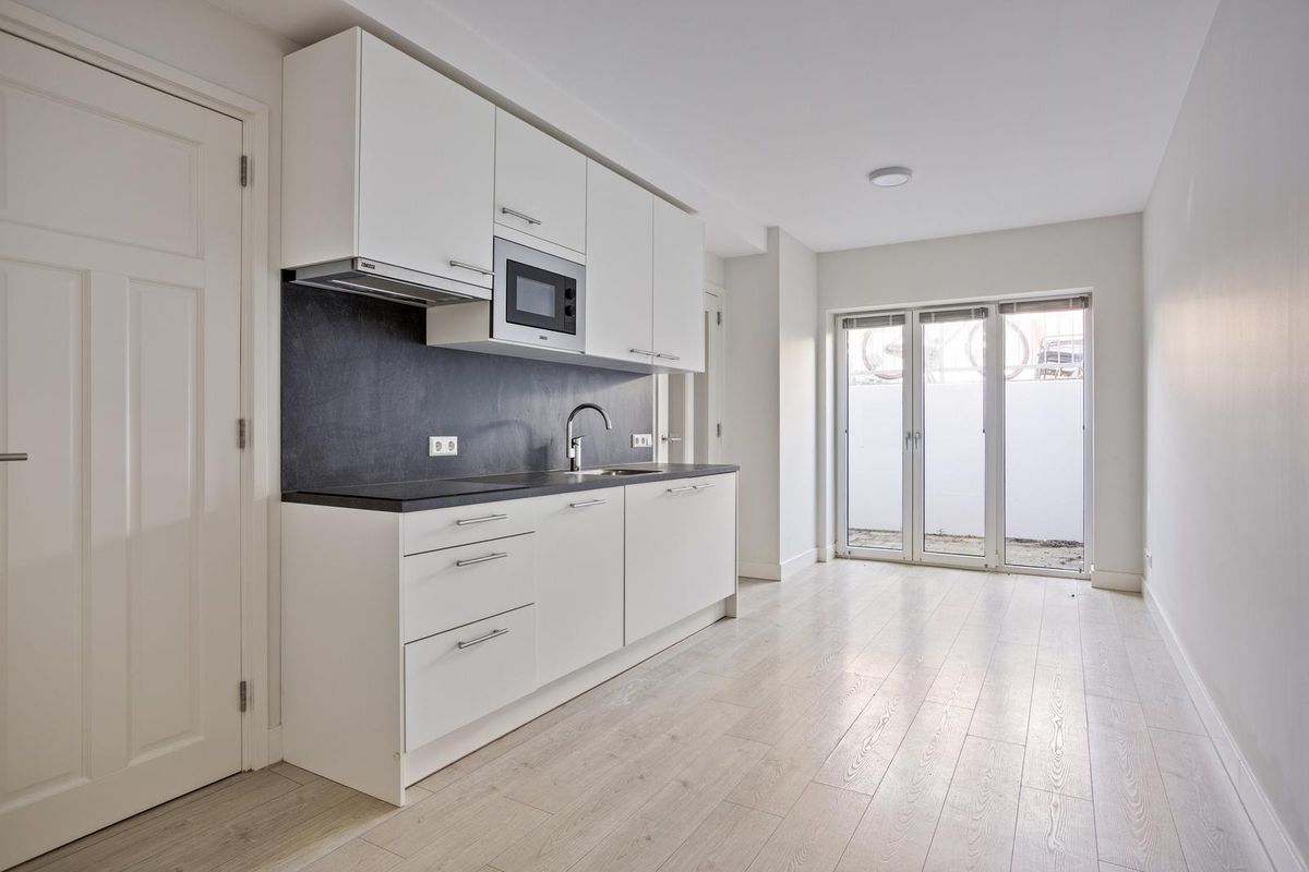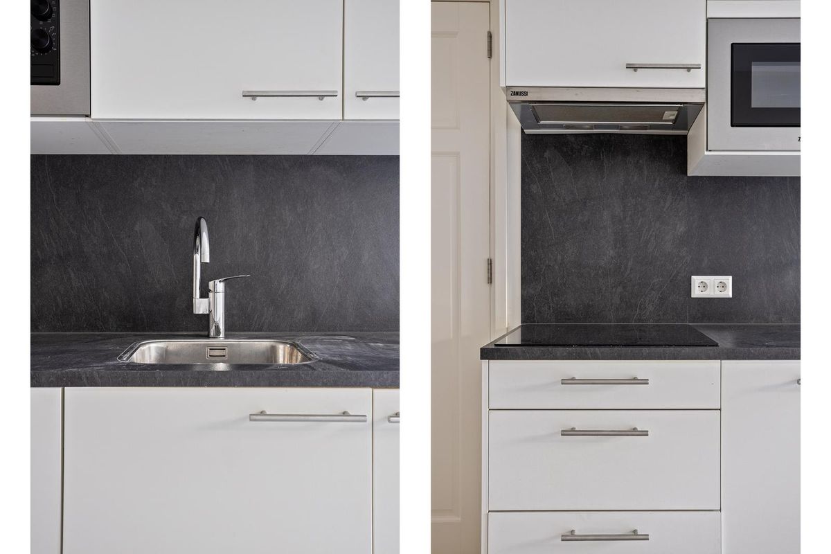 Via slechts vijf traptreden bereik je de entree van dit goed verzorgde appartement. Bij binnenkomst tref je een nette hal met meterkast en een separate toiletruimte, voorzien van een modern wandcloset en fonteintje. Vanuit de hal stap je de lichte woonkamer binnen. De grote raampartijen zorgen voor een prettige hoeveelheid daglicht en bieden toegang tot de voortuin. De open keuken vormt het hart van de ruimte en is uitgerust met diverse inbouwapparatuur, waaronder een vaatwasser, koelkast, combi-oven, inductiekookplaat en een strakke afzuigkap, ideaal voor kookliefhebbers! De slaapkamer bevindt zich aan de achterzijde van het appartement. Dankzij de grote ramen en openslaande deuren naar de tuin is het een verrassend ruime en lichte kamer, met een fijne verbinding tussen binnen en buiten. De badkamer is slim en praktisch ingedeeld met een modern wastafelmeubel, spiegelkast, douche en een handige handdoekradiator. Direct naast de badkamer bevindt zich een ruime bergkast met aansluitingen voor de wasmachine, evenals de opstelplaats voor de cv-ketel en de WTW-installatie.