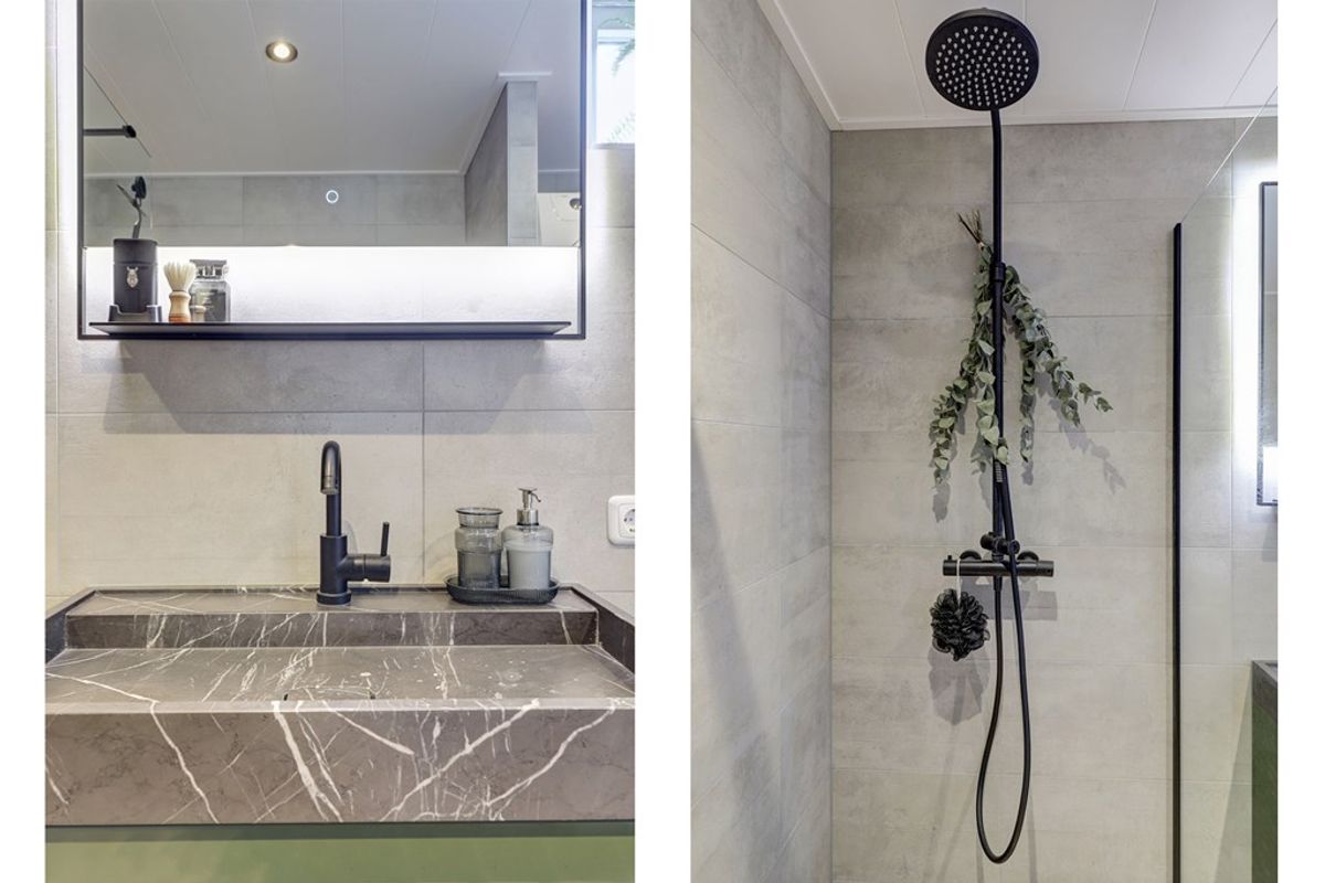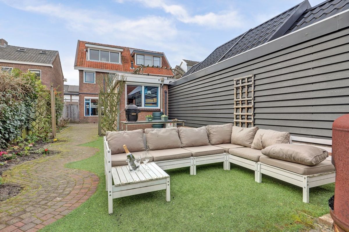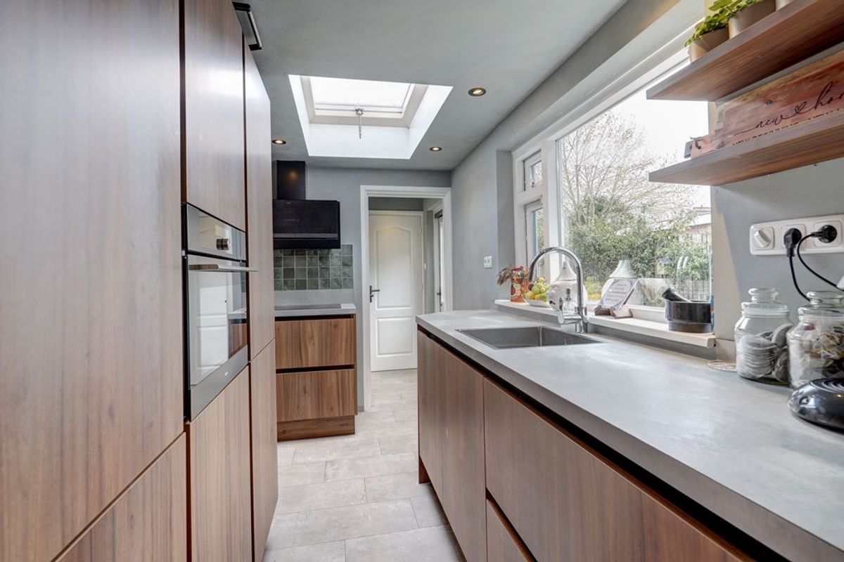 Vanuit de keuken bereik je het toilet, de badkamer en de achtertuin. De badkamer is in 2023 vernieuwd en stijlvol afgewerkt met fraai tegelwerk. Hier vind je een natuurstenen wastafel met meubel, een tweede toilet, een ruime inloopdouche, vloerverwarming, designradiator, mechanische ventilatie en aansluitingen voor wasmachine en droger.