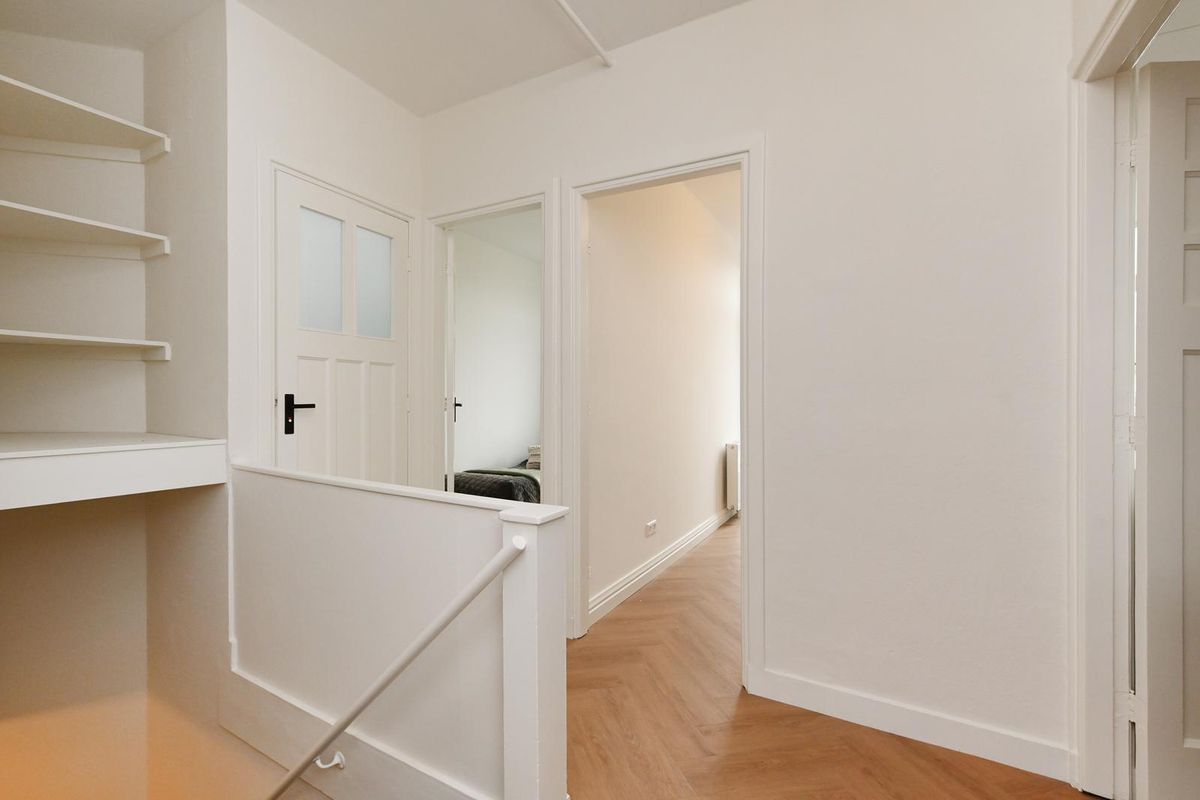 Entree op de eerste verdieping, ruime hal met meterkast en trap naar de tweede verdieping. Overloop met toegang tot alle vertrekken, de lichte woonkamer met erker aan voorzijde en open keuken aan de achterzijde.