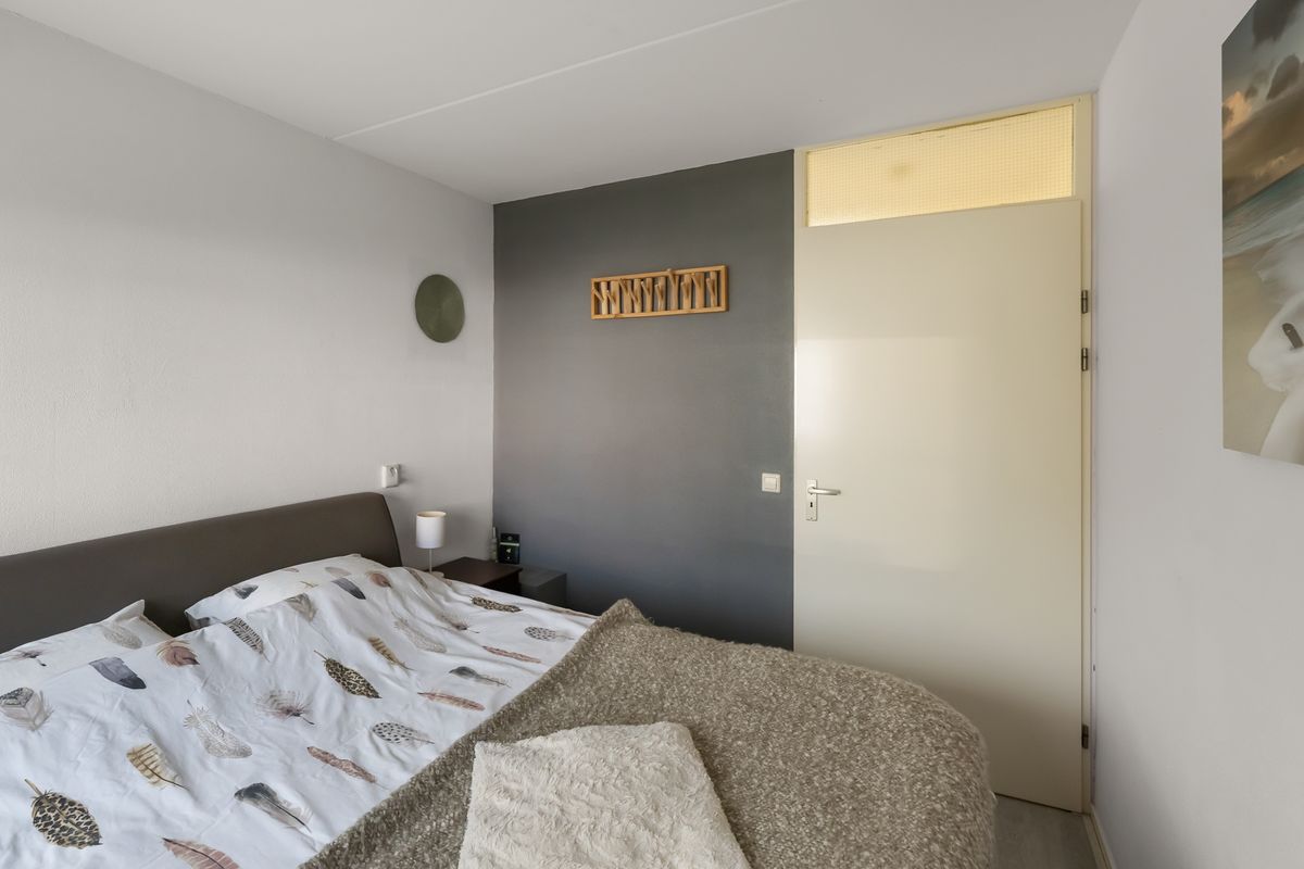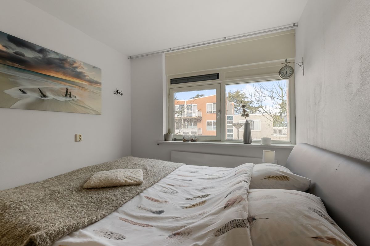 De tweede slaapkamer aan de voorzijde is eveneens royaal en licht. Grote ramen zorgen voor veel daglicht en een prettige, open sfeer.