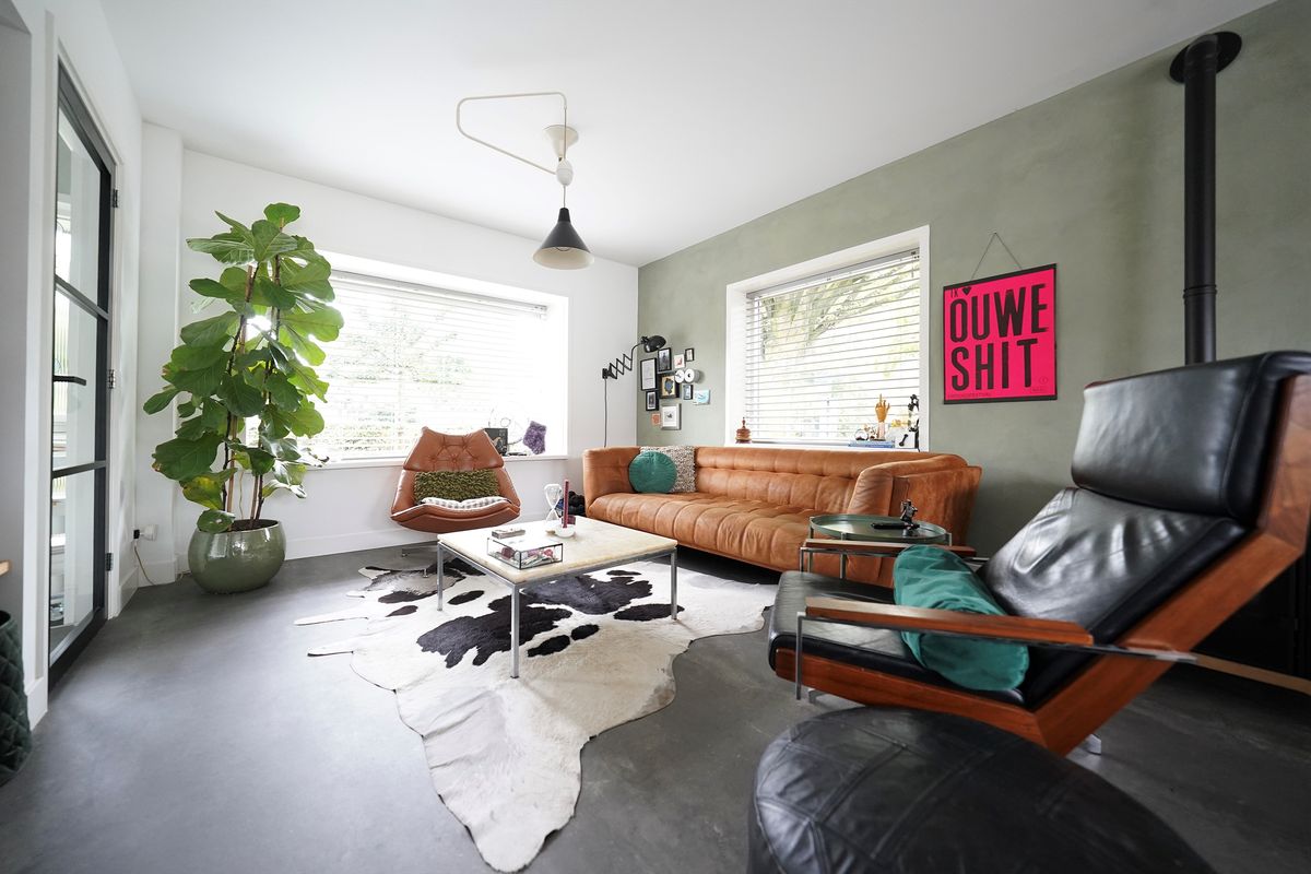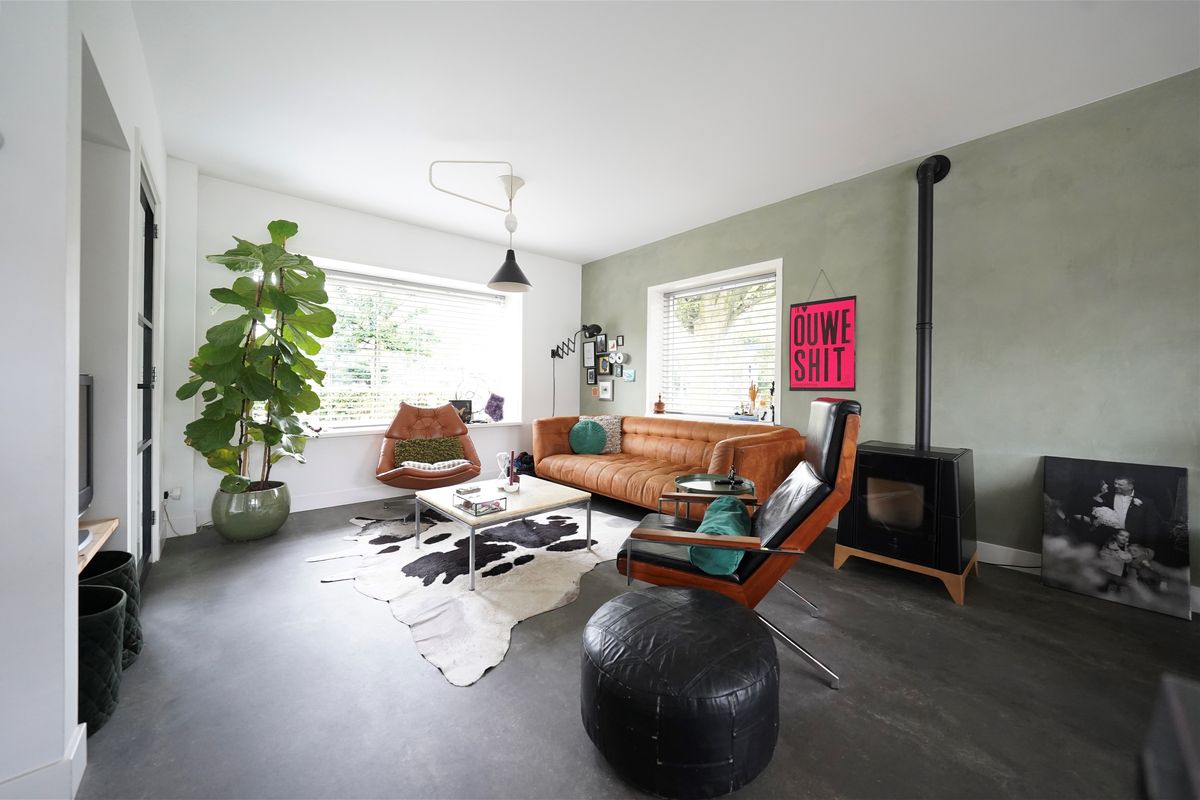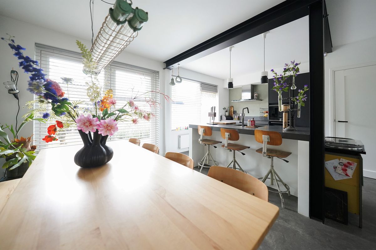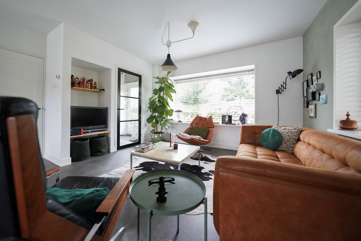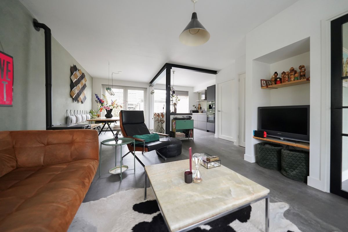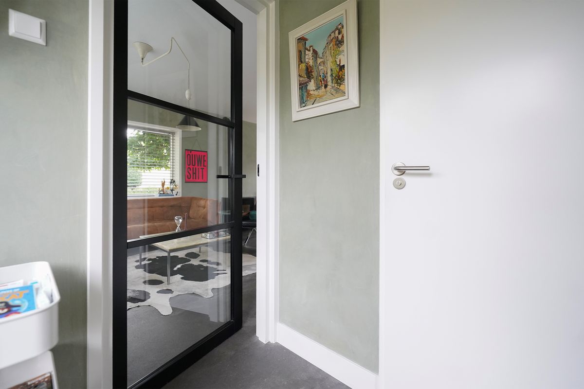 Bij aankomst valt mij meteen de vrije, groene ligging op. Ik kan gemakkelijk parkeren naast de woning en uiteraard heb je ook een eigen parkeergelegenheid in de garage mocht je dat willen. Ik kan de woning gemakkelijk bereiken via de zij-ingang, maar ik loop eerst naar de voordeur aan de voorzijde van de woning. Mij valt meteen de mooie zwarte kozijnen en voordeur op. Het voorraam is ook enigszins verdiept wat de woning een speels karakter geeft. De voortuin is ook ruim en heel verzorgd ingericht. Hier kijk je leuk over de straat! Bij binnenkomst valt mij meteen op dat ik een moderne, frisse woning binnenstap. In de hal is ruimte voor de jassen en schoenen en hier is ook de toegang naar de verzorgde toiletruimte, voorzien van een hangend toilet met fonteintje. Door een mooie zwarte deur met veel glas kom ik in de woonkamer. Een heerlijke lichte ruimte met veel raampartijen en een gezellige inrichting! Het zitgedeelte is aan de voorzijde gesitueerd en is voorzien van een groot zijraam met uitzicht op de mooie boom die aan de zijkant van de woning staat. De woonkamer is voorzien van een open inbouwkast waar de tv ook is geïnstalleerd. Verder is midden in de ruimte een stoere pelletkachel waar je vanuit de keuken en de woonkamer van kan genieten. De keuken is in 2019 ook geheel aangepakt en opengebroken. Zo is er een fijne open ruimte ontstaan! Een leuk detail is dat de stoere stalen balken nog in het zicht zijn gelaten en dat geeft juist karakter aan de ruimte. Bij de eettafel zijn de dubbele tuindeuren naar de achtertuin en deze geven ook weer dat extra fijne daglicht. De keuken zelf is prachtig! Een ruime opstelling met een spoeleiland waar je ook fijn aan kan zitten. Een matzwarte keuken met alle inbouwapparatuur aanwezig. Echt een eyecatcher! Bij de keuken is nog een handige bergkast voor al je provisie. De gehele ruimte is voorzien van vloerverwarming en een mooie pvc-vloer. Naast de bergkast is een deur naar de trapopgang, deze is dus mooi afgesloten en niet zichtbaar vanuit de woonkamer en de keuken.