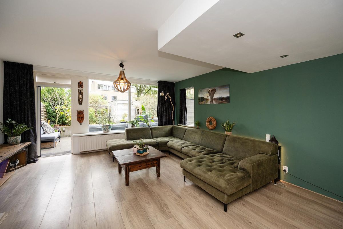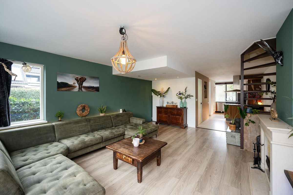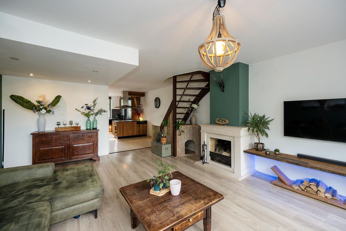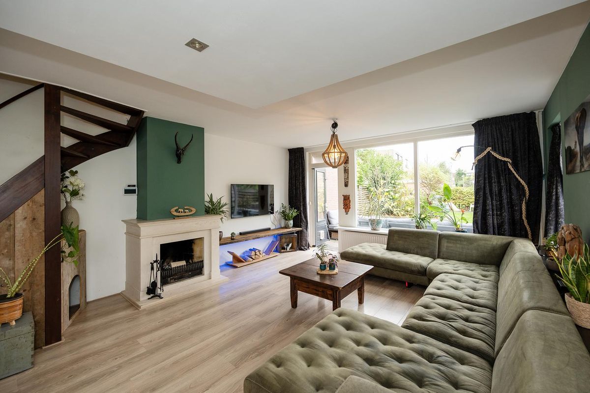 - een royale tuingerichte woonkamer met haard