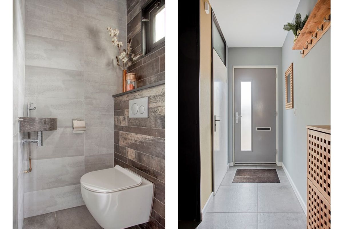 Ruime entree met toiletruimte, meterkast, trap naar de verdieping en toegang tot de woonkamer