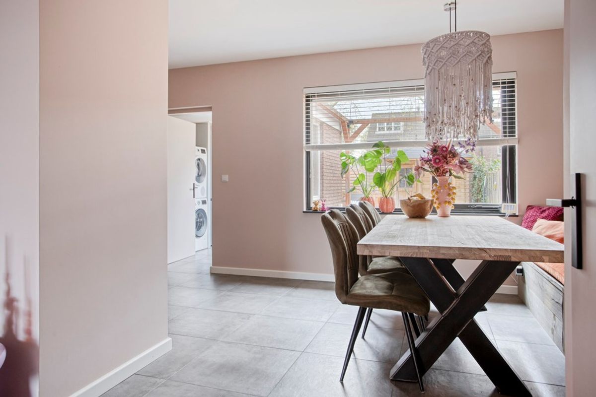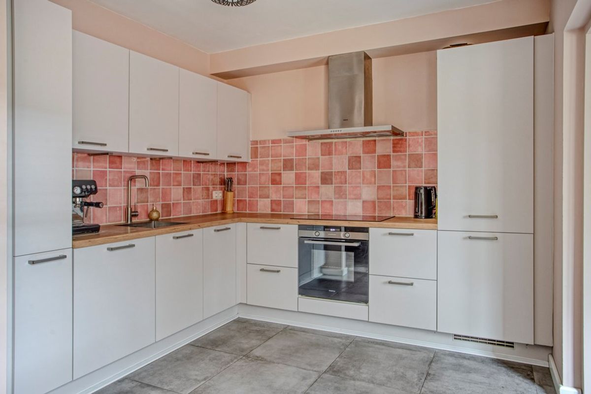 De woonkamer is een echte eyecatcher. Ruim, licht en sfeervol ingericht, met als warm middelpunt de houtkachel. De moderne afwerking en het kleurgebruik geven de ruimte een eigentijdse uitstraling die direct aanspreekt. Aan de achterzijde loopt de ruimte naadloos over in de keuken. Deze is strak uitgevoerd en voorzien van diverse inbouwapparatuur – klaar voor dagelijks gemak. Extra pluspunt: de bijkeuken. Ideaal als extra bergruimte, wasruimte of gewoon als praktische schakel naar de tuin.