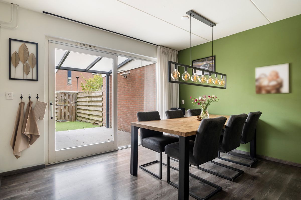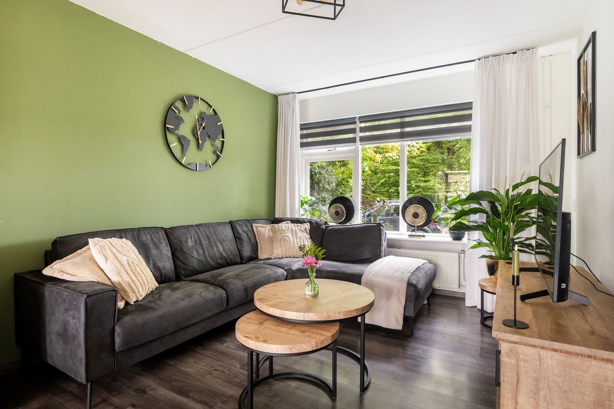 • Lichte woonkamer met inbouwkast en schuifpui naar de tuin