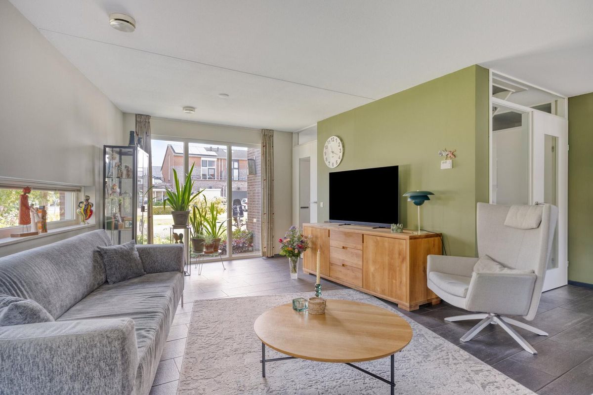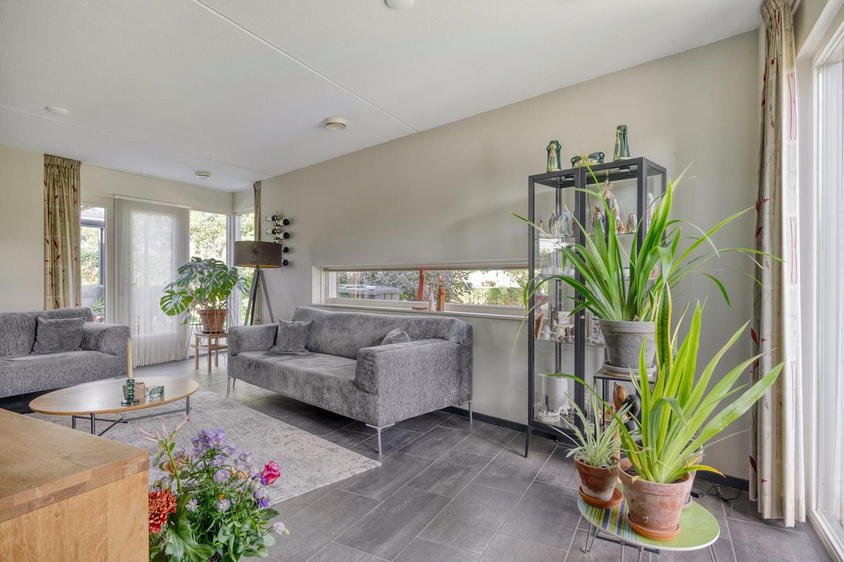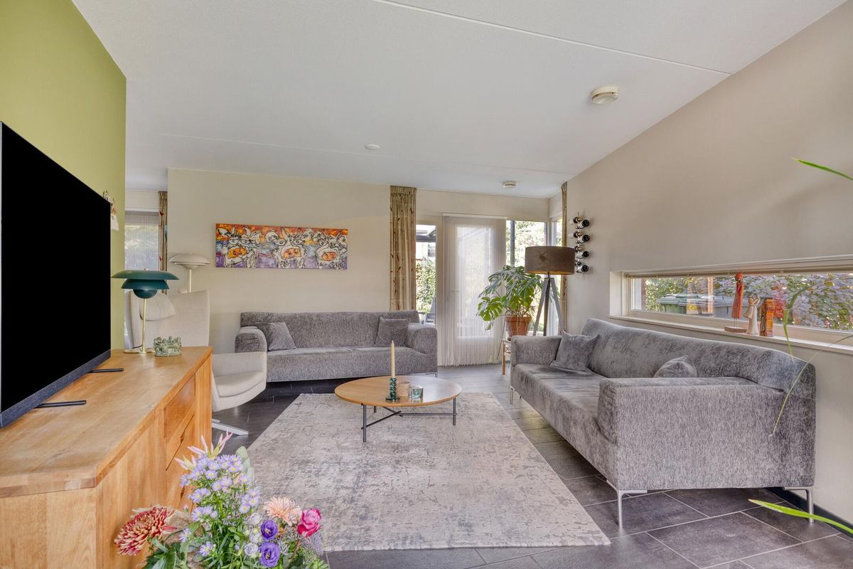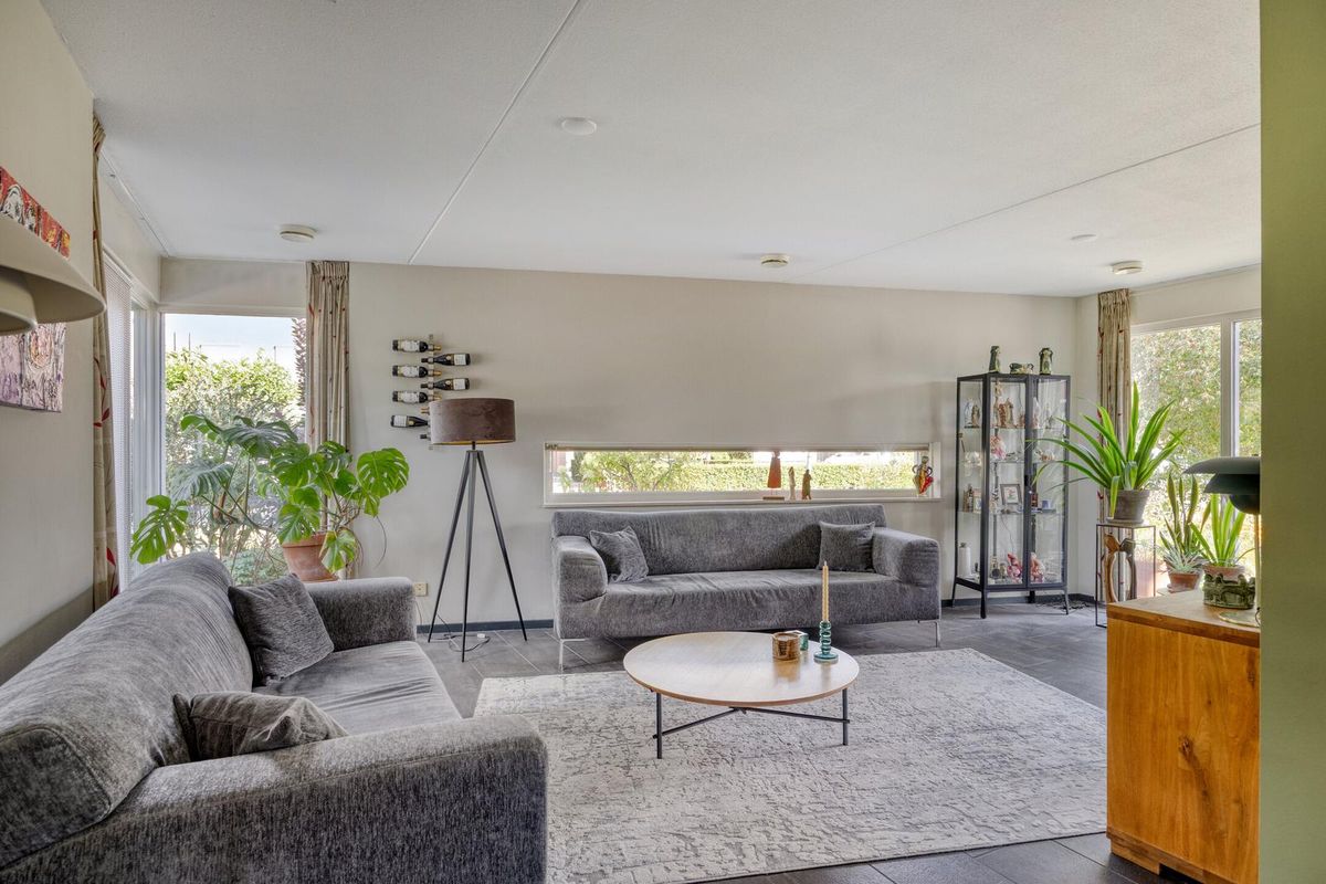 De woonkamer is speels ingedeeld en voorzien van grote raampartijen, waardoor er volop lichtinval in de woonkamer is. Tevens heeft de woonkamer openslaande deuren naar de serre. Hierdoor is het mogelijk om de serre bij de woonkamer te betrekken, waardoor deze als het ware in elkaar overlopen. Door de raampartij tot aan de grond in de voorgevel is er mooi zicht over het groene hofje aan de voorzijde.