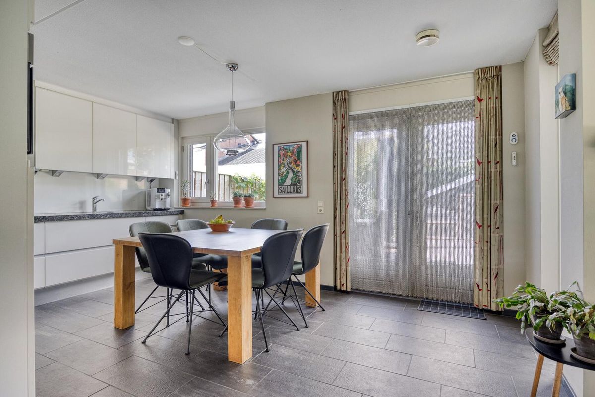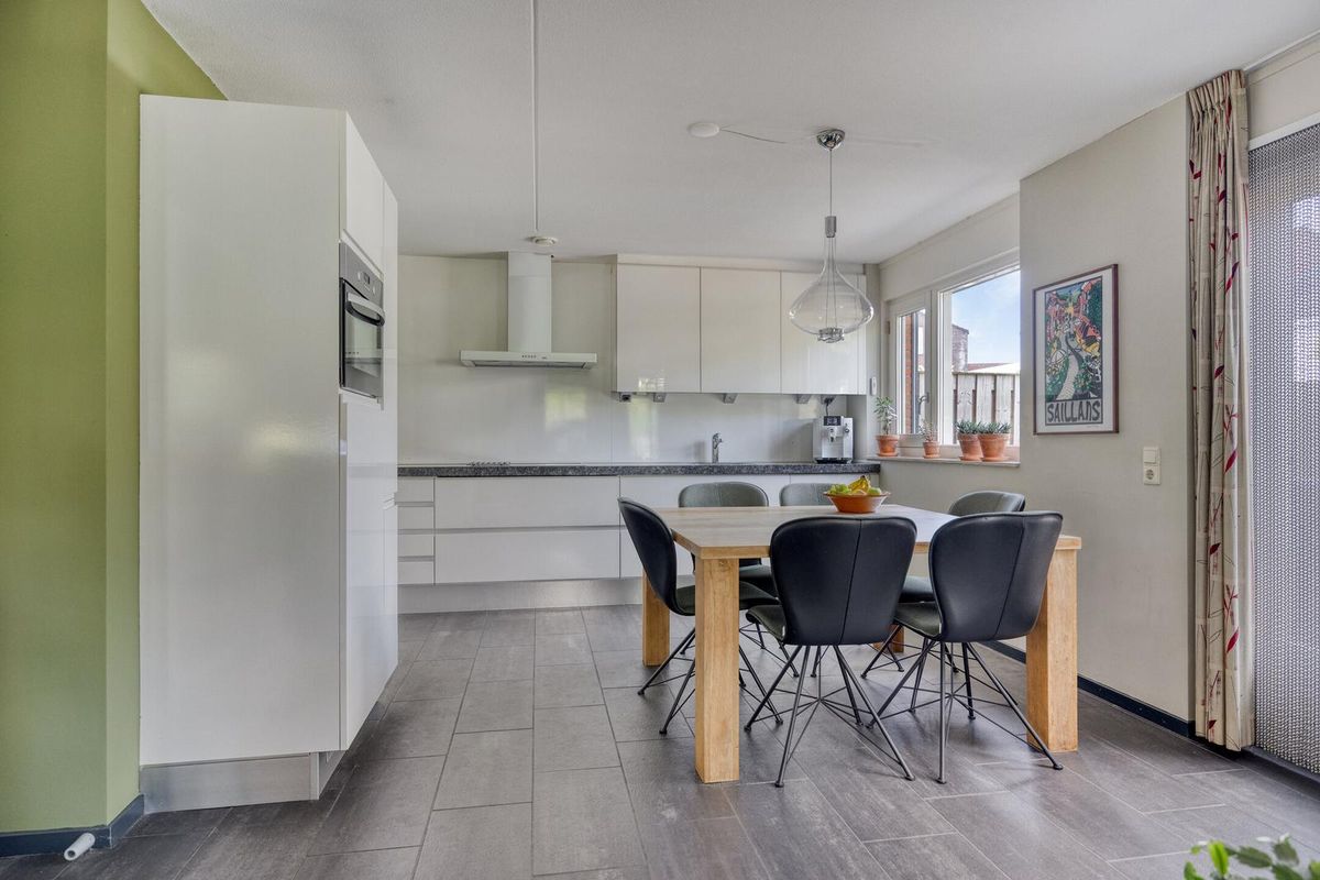 De open woonkeuken is aan de achterzijde van de woning gesitueerd en heeft openslaande deuren naar de tuin. Hierdoor is het binnen- en buitenleven uitstekend te combineren. Het betreft hier een echte woonkeuken met voldoende ruimte voor het plaatsen van een 6-persoons eettafel. De lichte keuken is verdeeld in een werkgedeelte en een extra kastenwand. Uiteraard heeft de keuken alle benodigde inbouwapparatuur zoals een koelkast, combimagnetron, vaatwasser, inductiekookplaat en afzuigschouw. Vanuit de keuken is een handige wasruimte met wasmachine- en drogeraansluiting te bereiken.