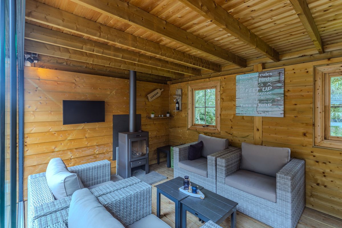 De onderhoudsvriendelijke achtertuin (ca. 10 x 5 m) is gelegen op het zonnige westen, waardoor je hier volop van de middag- en avondzon kunt genieten. Het zonnescherm zorgt hiernaast voor de nodige schaduw, hier vind je ook een kleinere berging. Als klap op de vuurpijl staat er achterop het perceel een bijzonder sfeervol en middels een glazen schuifpui geheel afsluitbaar lounge-tuinhuis voorzien van elektra en een houtkachel (ter overname). Hier vind je gegarandeerd urenlange ontspanning, door alle jaargetijden heen!