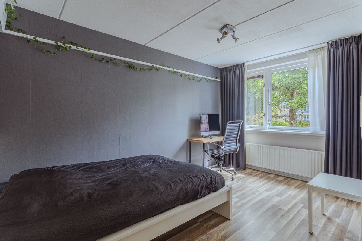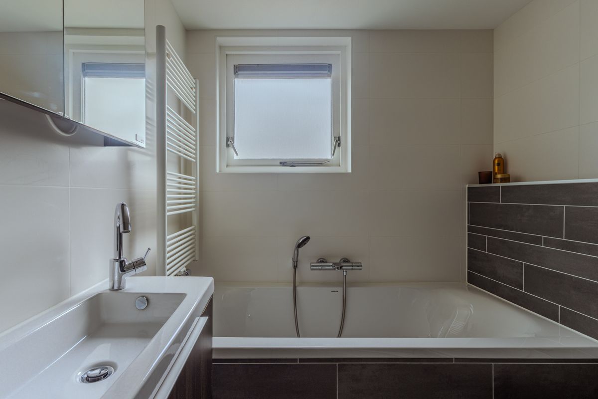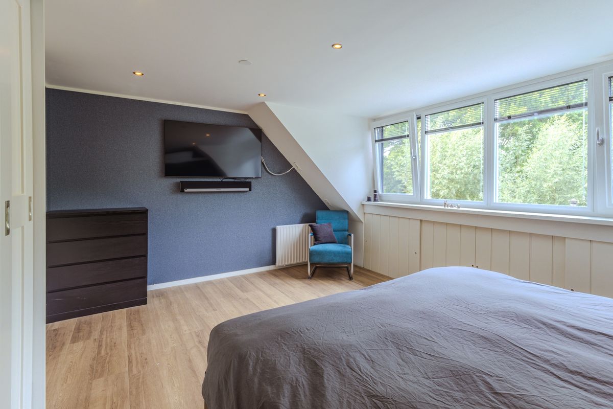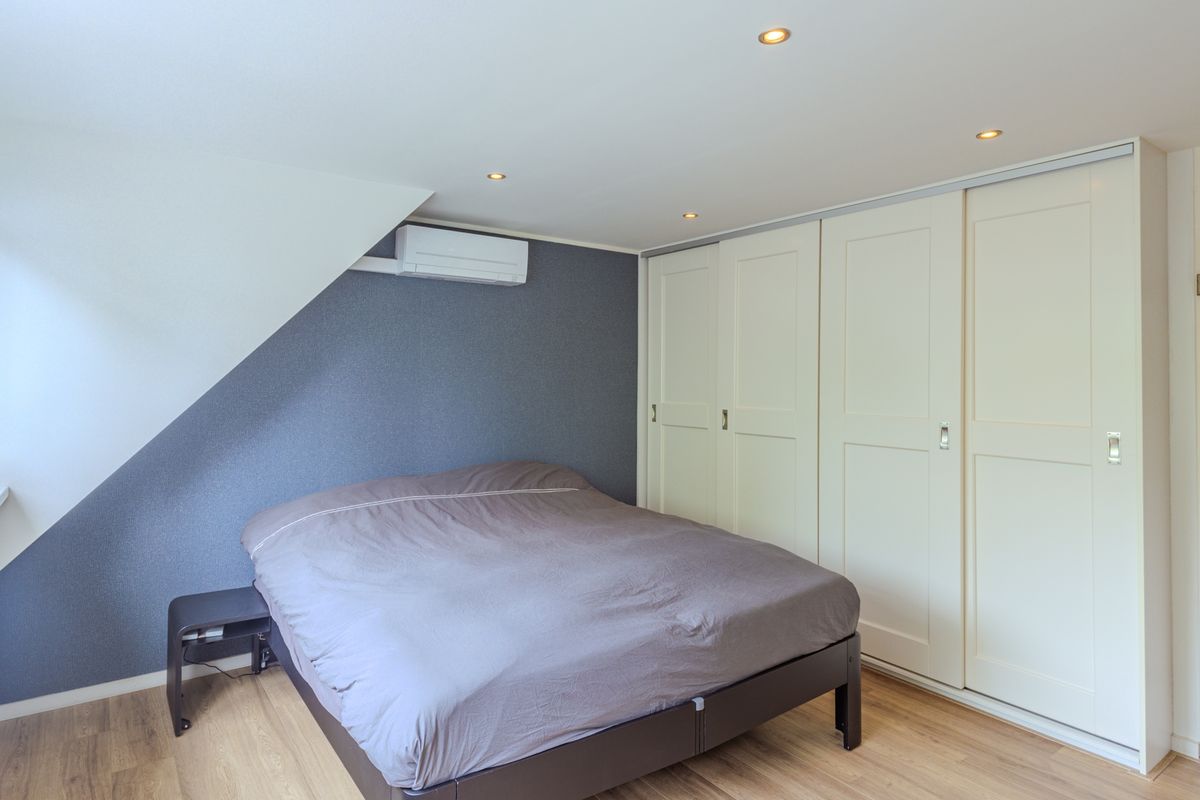 De trapopgang naar de overloop is afgesloten door een glazen deur. Van hieruit toegang tot twee slaapkamers en de badkamer. De riante ouderslaapkamer is in 2022 verder verruimd door de plaatsing van een ca. 3,70 meter brede dakkapel. In deze slaapkamer vind je verder airconditioning, bergingsmogelijkheden achter de knieschotten en een 4-deurs inbouwkast. De tweede ruime slaapkamer is aan de straatzijde gesitueerd en beschikt eveneens over airconditioning. De moderne badkamer is onder meer uitgerust met een ligbad met douchemogelijkheid, een douchecabine, een tweede inbouwtoilet, een designradiator en een wastafelmeubel met spiegelkast.