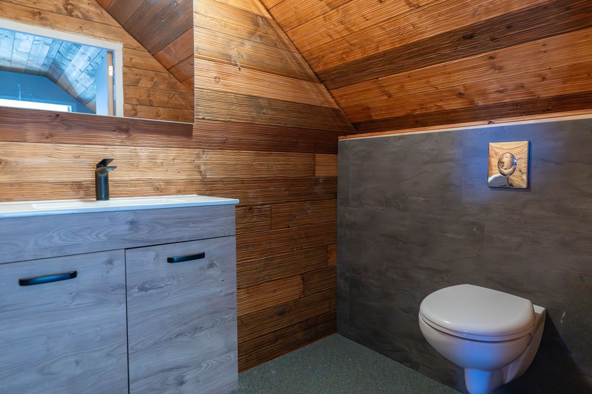 • Slaapkamer met airco (verwarmen/koelen) en aansluitend een compacte badkamer met wastafel en toilet