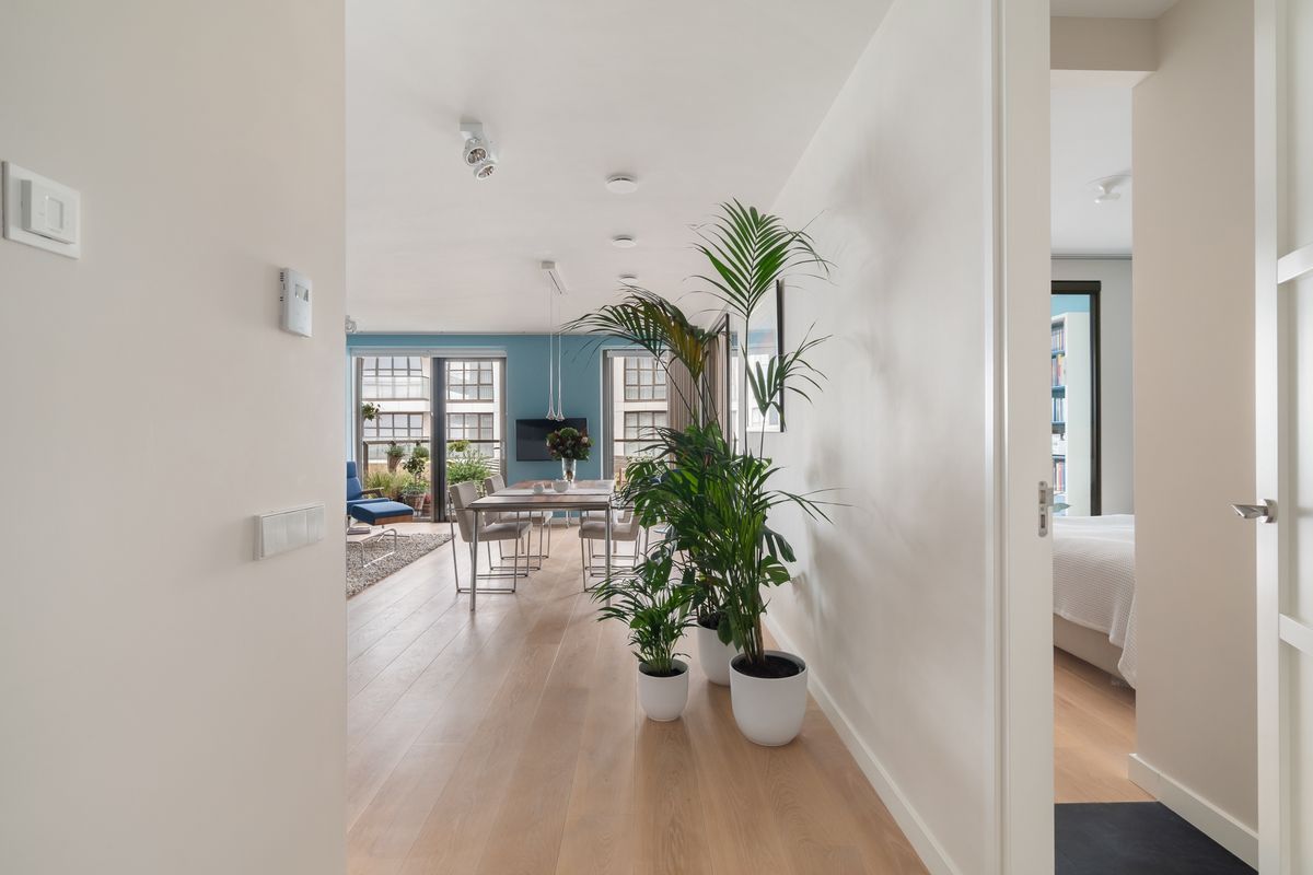 In de hal bevindt zich de stijlvolle badkamer. Deze is in voorzien van een ruime inloopdouche, dubbele wastafelmeubel, toilet en een heerlijk ligbad. Alles is strak, fris en instapklaar.