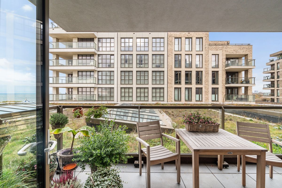 Het ruime terras van bijna 20 m² vormt zonder twijfel één van de absolute hoogtepunten van dit appartement. Vanuit de woonkamer stap je direct naar buiten en word je verwelkomd door een adembenemend vrij uitzicht op zee. Hier kijk je uit over de kustlijn, een uitzicht dat nooit verveelt en elk seizoen een ander karakter heeft.