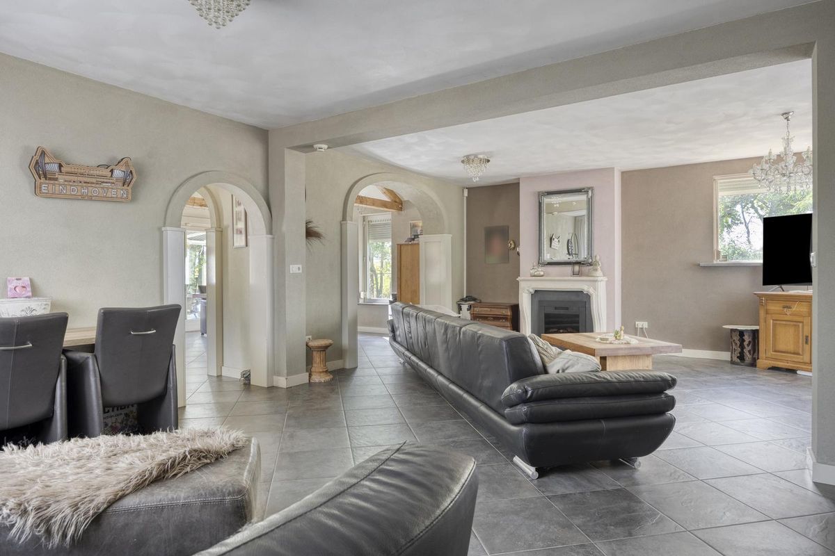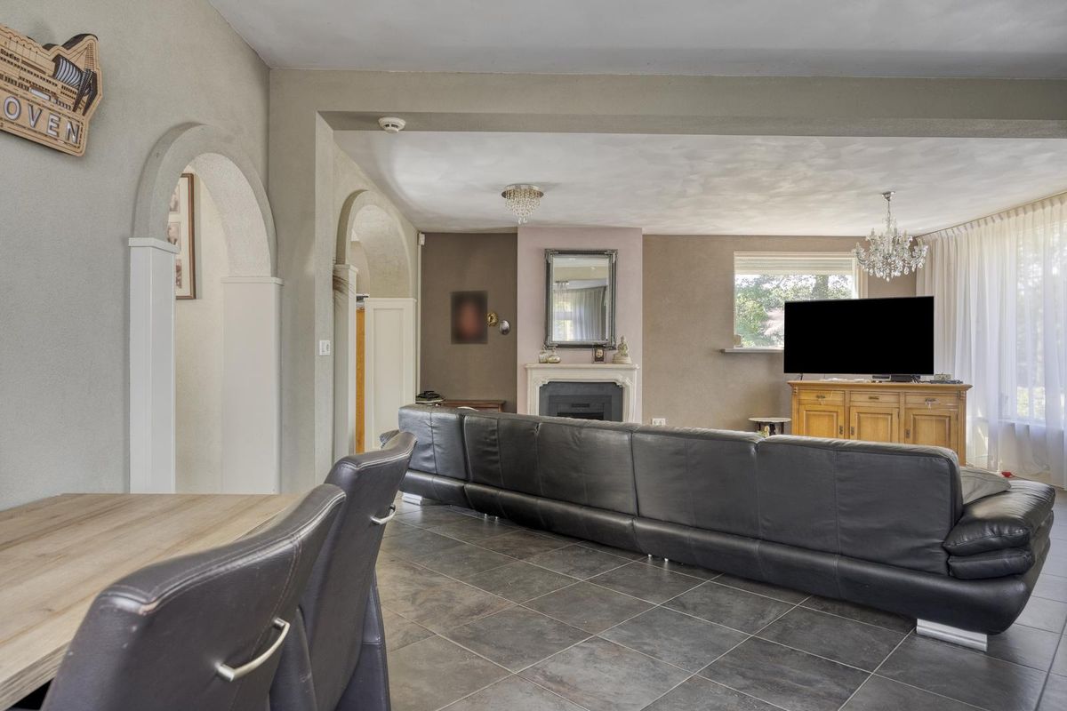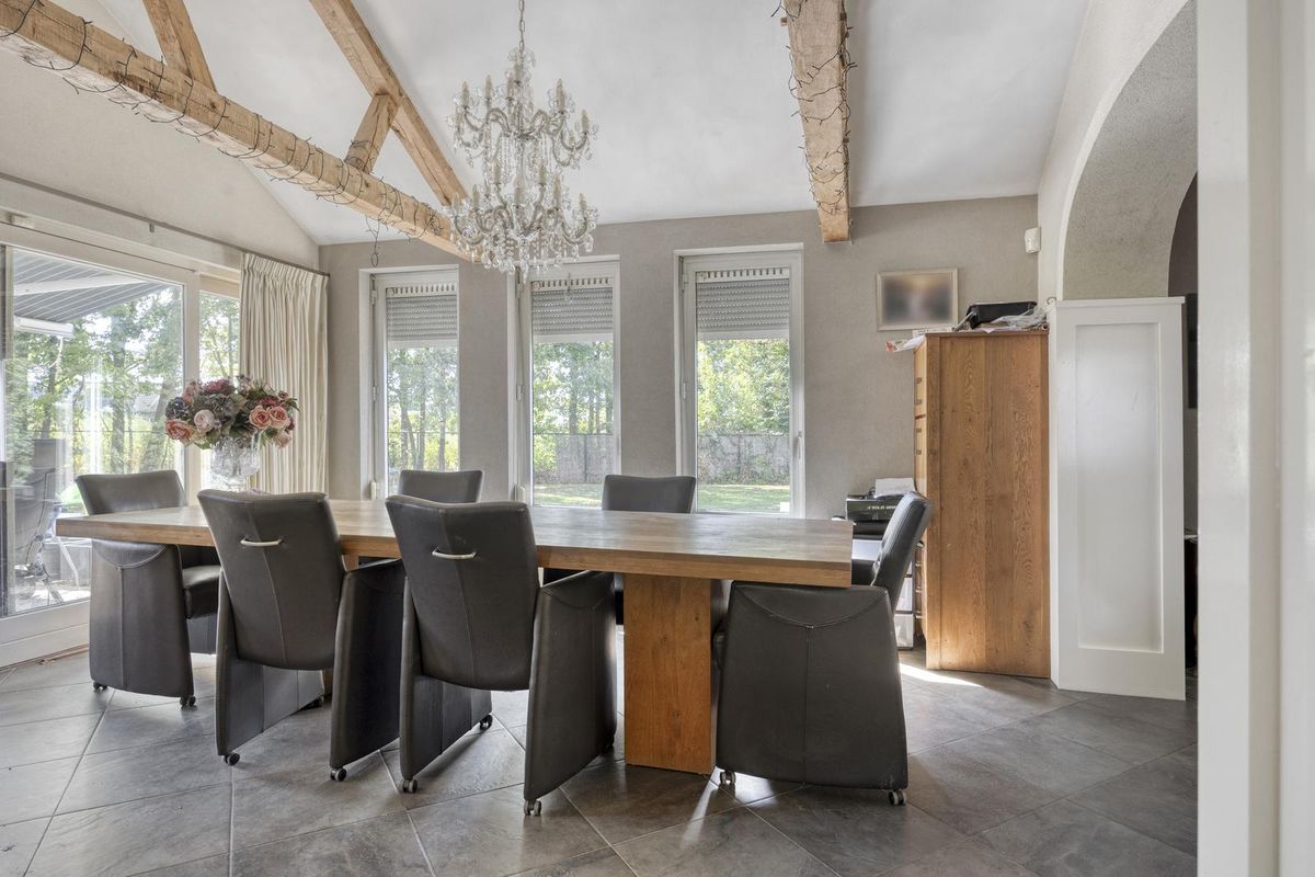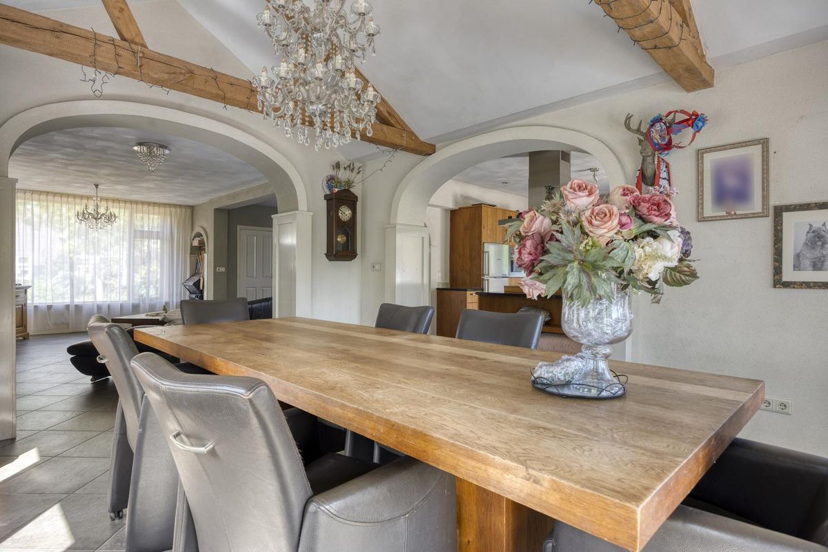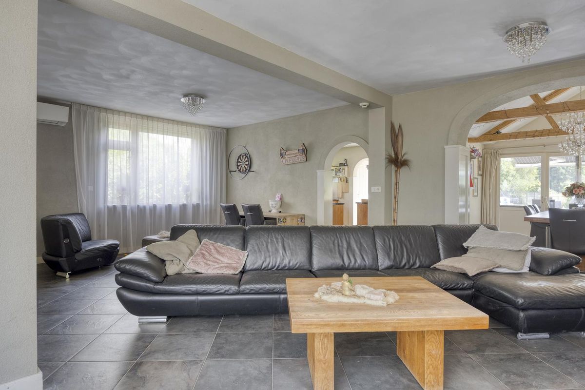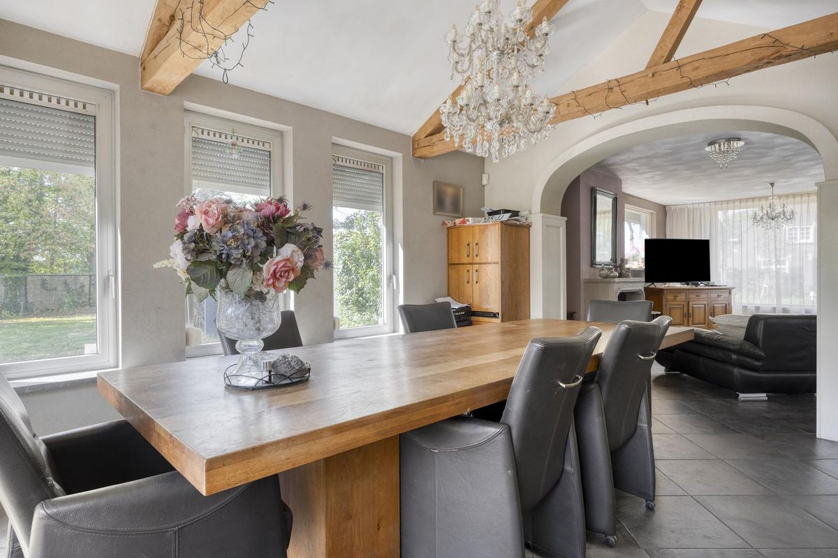 De woning verwelkomt je met een lichte en ruime woonkamer. Grote ramen laten veel daglicht binnen en bieden een prachtig uitzicht op de groene tuin. Er is genoeg plek voor een royale zithoek en een lange eettafel, waardoor dit de perfecte ruimte is om samen te komen met familie of vrienden.