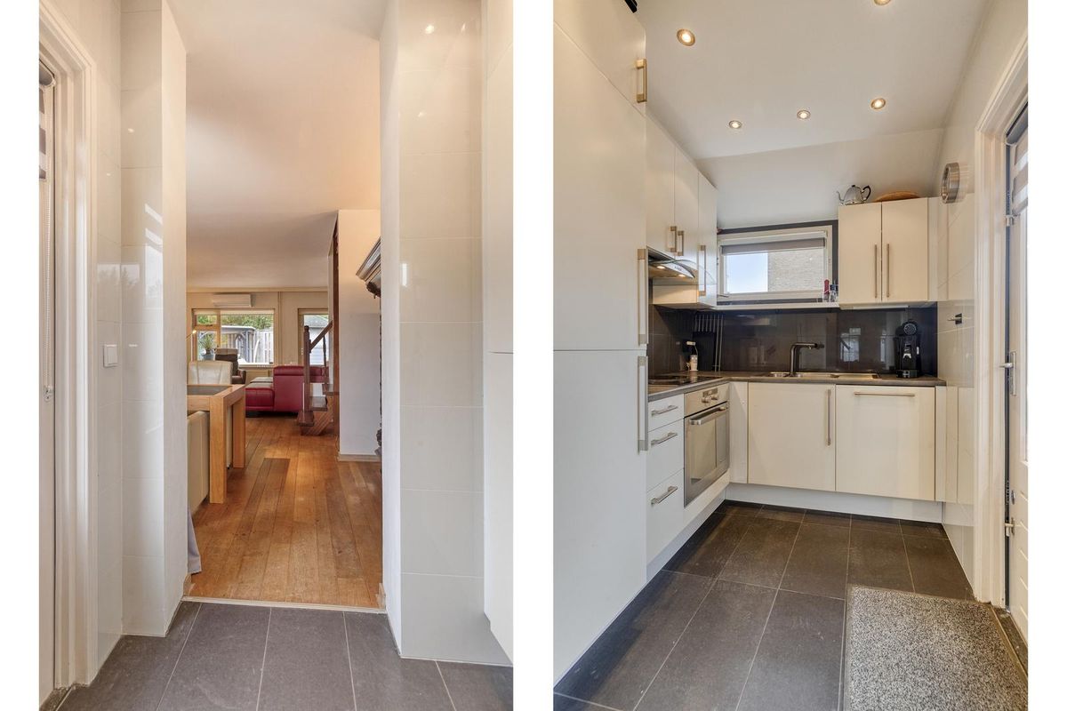 De lichte hoekkeuken aan de voorzijde is modern en netjes afgewerkt. Met een kookplaat, afzuigkap, oven, koel-/vriescombinatie en vaatwasser is hier aan alles gedacht, ideaal voor wie graag kookt en dineert met familie of vrienden.