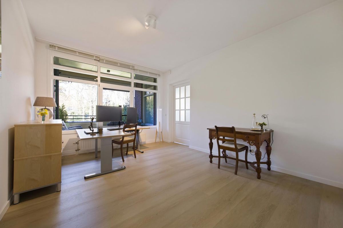 Vanuit de zeer royale hal met een inpandige berging en separaat toilet bereikt u allereerst de zonnige, zeer lichte living.