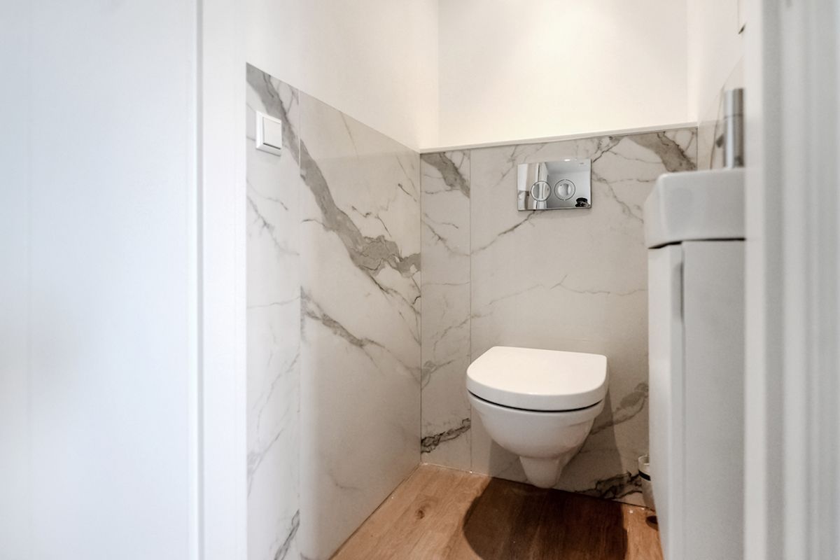 Have you always wanted to live in a historic monument? But one that is finished with luxury and attention to detail? Then this is the perfect place for you! Step inside the beautiful, well-maintained staircase and head to the second floor, where the entrance to your new apartment is located. Characteristic of your new home are its charming atmosphere, abundant natural light, and luxurious touches. On the first floor, you’ll find a spacious living room with large windows offering views over the Denneweg. The open kitchen is equipped with all necessary built-in appliances (electric cooktop, dishwasher, extractor hood, fridge-freezer) and more than enough storage space. There is also a separate toilet on this floor. Upstairs, you’ll find a generous bedroom with a practical laundry room, complete with a washing machine and dryer (both included with the apartment). In addition, there is a luxurious bathroom where you can truly relax, featuring a second toilet, a washbasin with vanity unit, and a spacious walk-in shower. Thanks to the addition of four solar panels, a heat pump, and a mechanical ventilation system, the apartment boasts exceptional sustainability, resulting in an energy label of A+++.