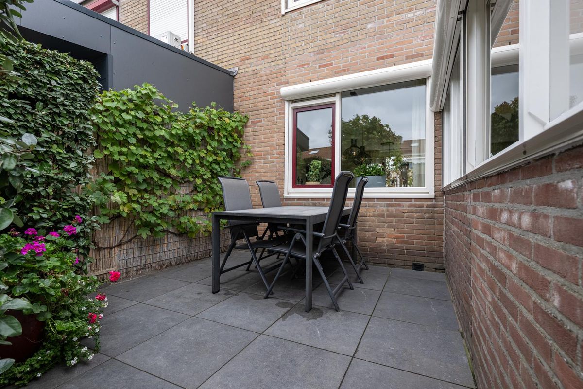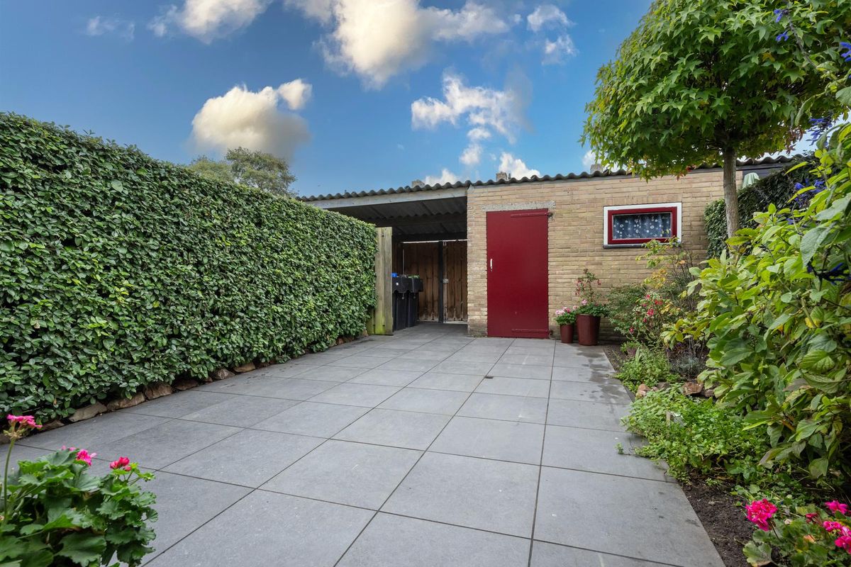 Buiten is het genieten: de achtertuin is onderhoudsvriendelijk bestraat, voorzien van een berging én achterom. Met de ligging op het zuiden heb je hier de hele dag zon.