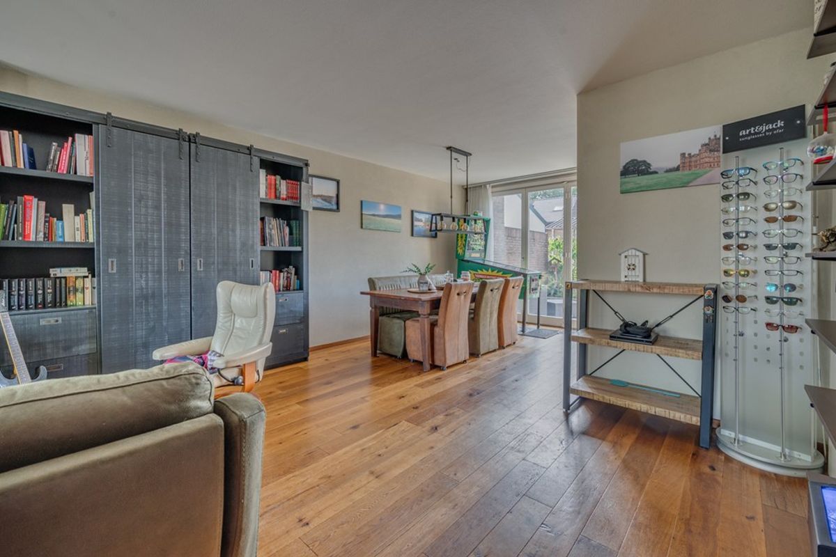 - Woonkamer met eiken vloer en harmonicadeur naar terras.