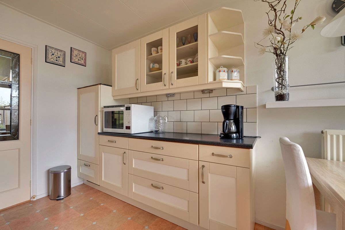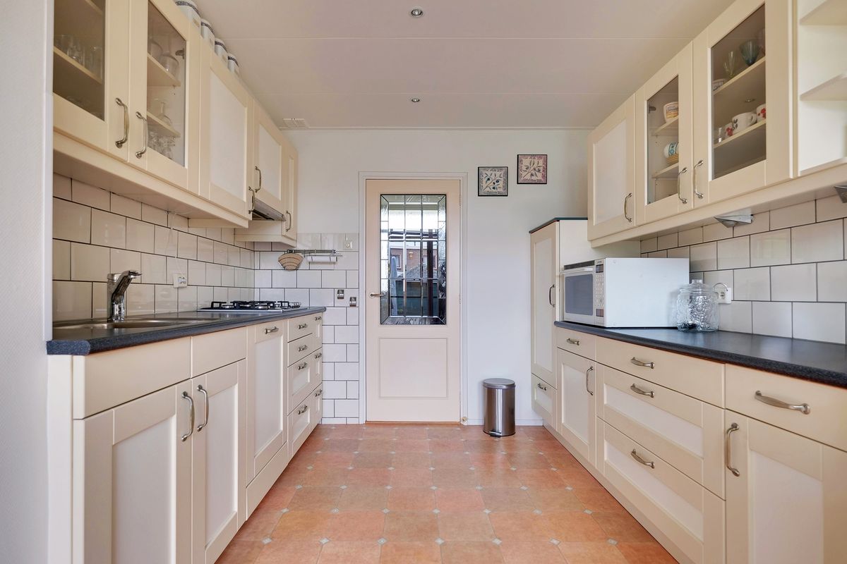 Entree, binnenkomsthal met trapkast/meterkast, toiletruimte met zwevend toilet, uitgebouwde, doorzonwoonkamer voorzien van elektrische haard, dichte keuken met rechte keukenopstelling voorzien van diverse inbouwapparatuur. Fraai aangelegde achtertuin gelegen op het Zuidoosten met aangebouwde stenenberging, tuinhuis en achterom.