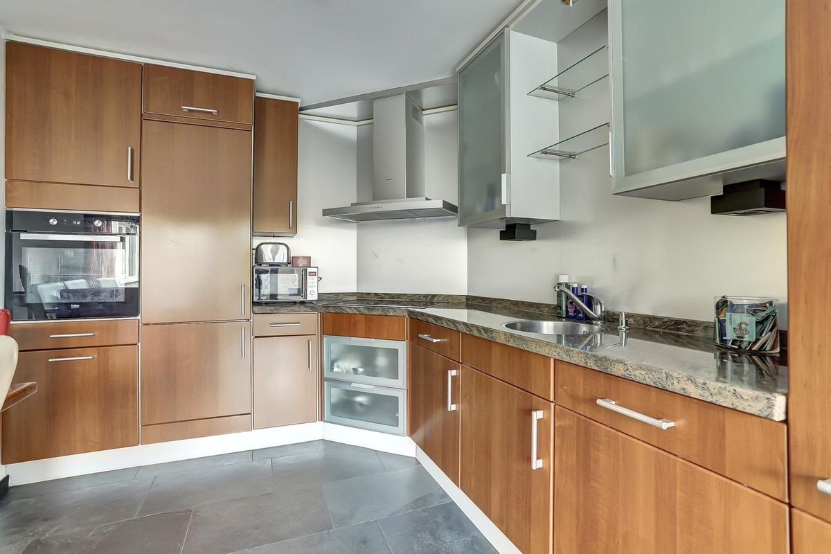 Via een tussenportaal bereikt u het separate toilet, de badkamer en twee comfortabele slaapkamers, waarvan één dient als walk-in closet. De badkamer is voorzien van een ligbad, douchecabine, wastafelmeubel en designradiator — een plek om heerlijk te ontspannen.