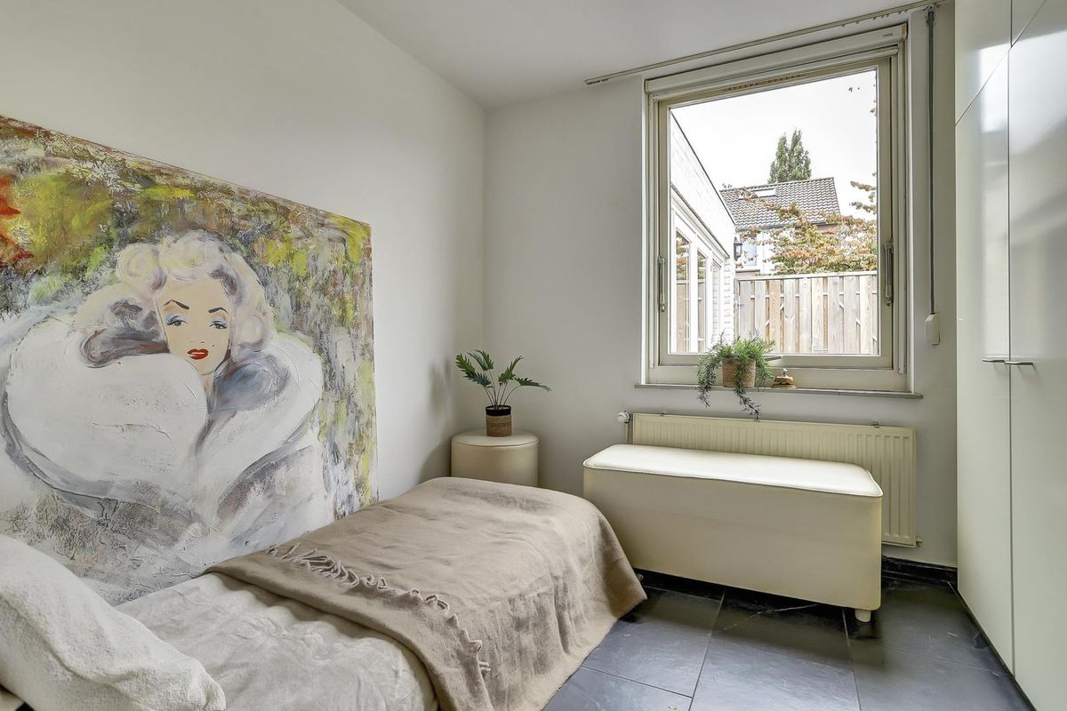 Op de eerste verdieping bevinden zich nog twee ruime slaapkamers, beide met royale dakramen en hoge plafonds die zorgen voor een licht en open gevoel. De grootste slaapkamer beschikt bovendien over extra bergruimte achter de knieschotten — praktisch en sfeervol tegelijk.