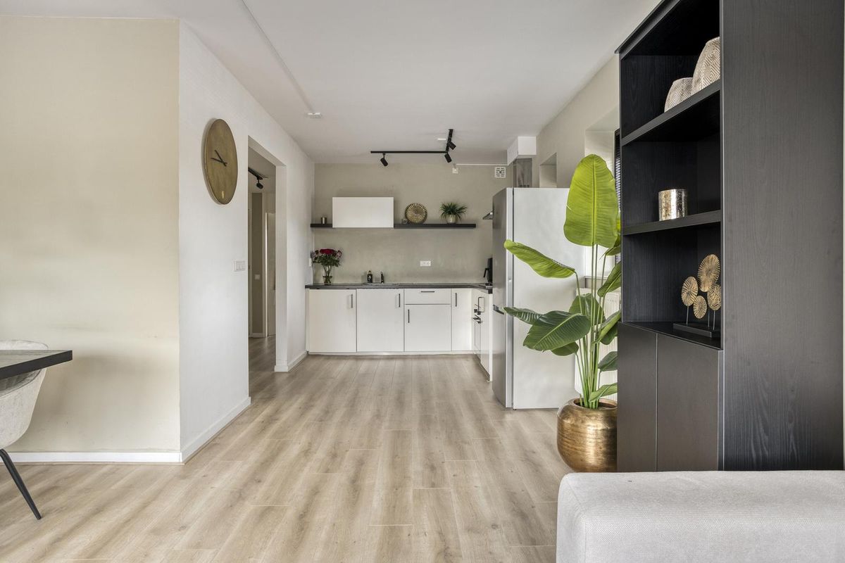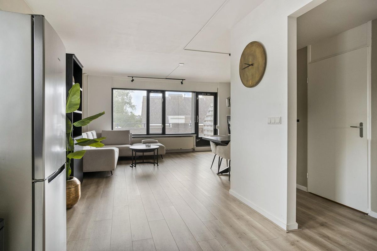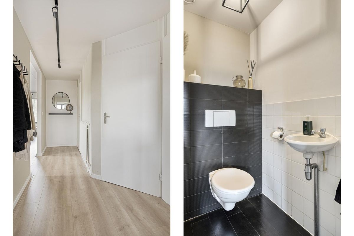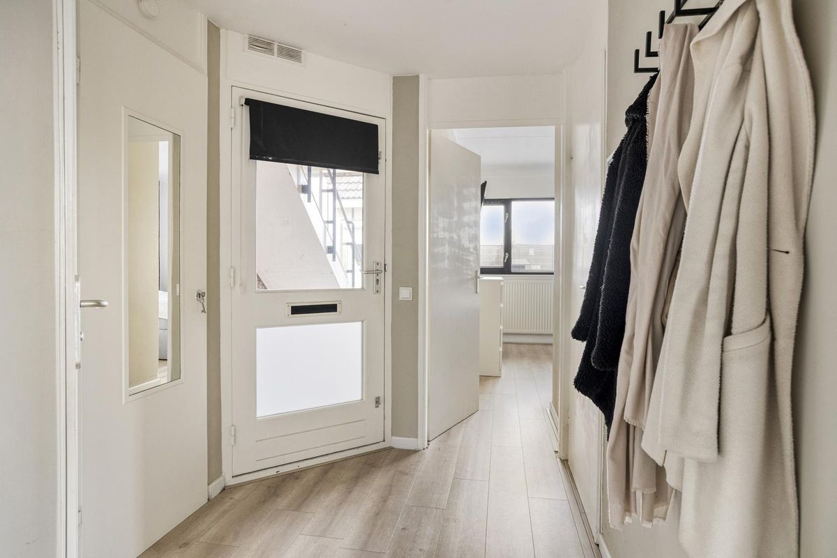 Je komt binnen in een ruime, lichte hal die direct een verzorgde indruk achterlaat. Hier vind je toegang tot het separate toilet, de badkamer en de slaapkamer. Een fijne binnenkomer met alles logisch op z’n plek.