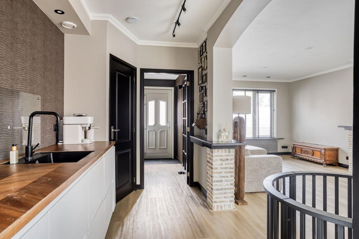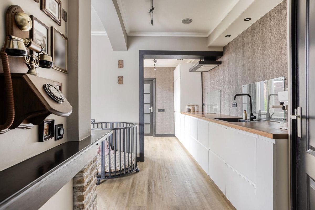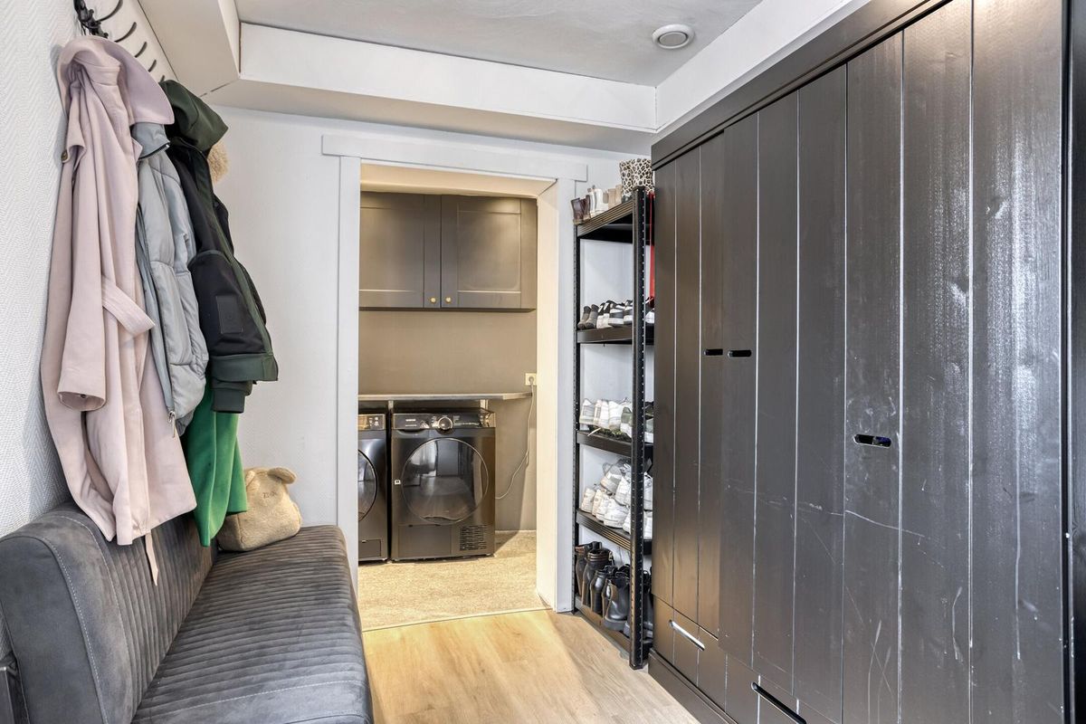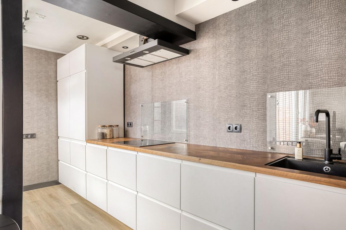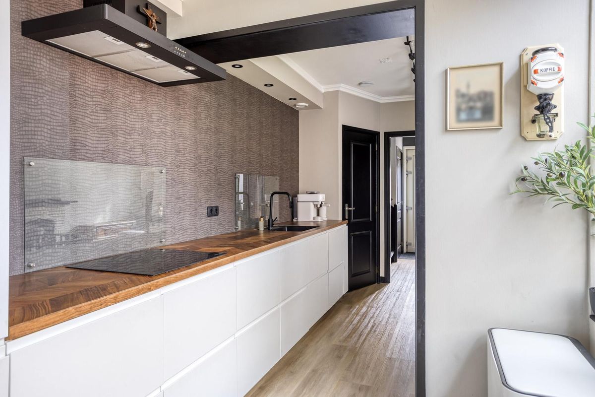 De moderne open keuken is voorzien van veel werkblad en voorzien van de benodigde inbouwapparatuur, zoals een inductiekookplaat met afzuigkap, vaatwasser, koelkast en vriezer. Er bevinden zich momenteel geen oven en magnetron in de keuken maar hiervoor zijn al wel aansluitingen beschikbaar. Vanuit de keuken is de praktische bijkeuken te bereiken, welke groter is dan je zou vermoeden. Deze ruimte is gemakkelijk te benutten als bergruimte, maar kan ook gebruikt worden als extra (slaap)kamer of om een (extra) badkamer te creëren. Achterin bevindt zich de aansluiting voor de wasmachine. Ook hier kan nog gebruikt gemaakt worden van de aparte wastafel.