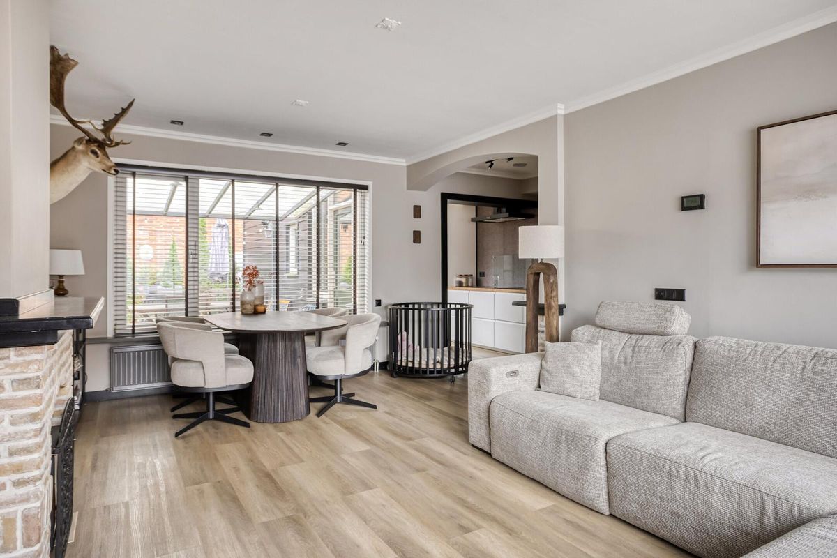 Via de voordeur stap je binnen in de nette hal met toegang tot de meterkast, het toilet en de trapopgang naar de verdieping. Via de hal bereik je de moderne open keuken en valt direct de fijne lichte leefruimte op in de woonkamer. De woonkamer is voorzien van een mooie PVC vloer met vloerverwarming. De elektrische haard geeft een sfeervol gevoel aan het geheel.