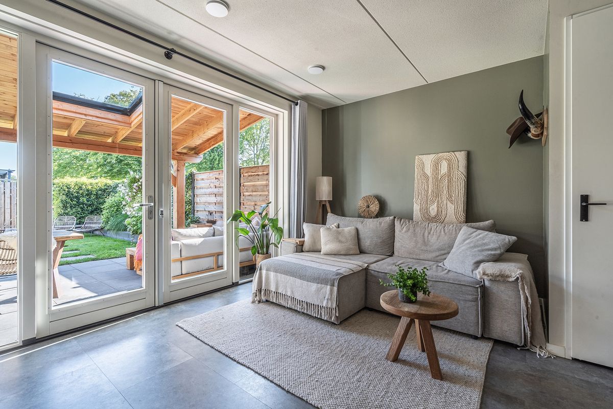 • Ruime, lichte woonkamer met provisiekast en openslaande deuren naar de tuin